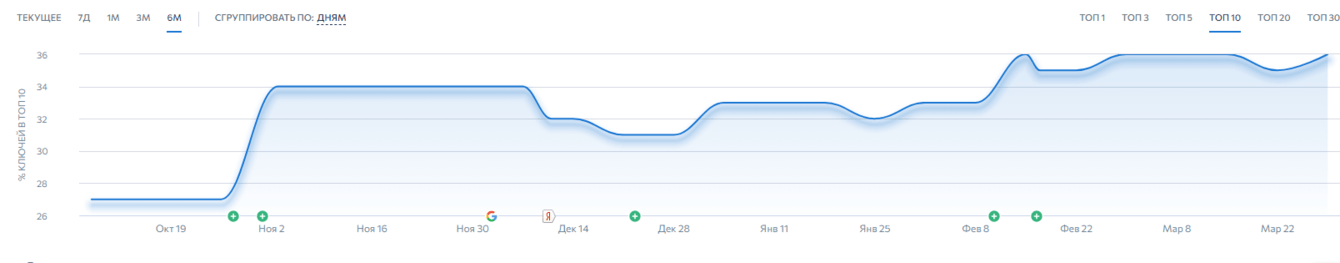 В начале работ трафик на сайте составлял 1000 посетителей, но за 7 месяцев работы вырос до 2600 визитов в неделю: