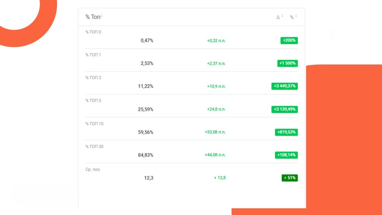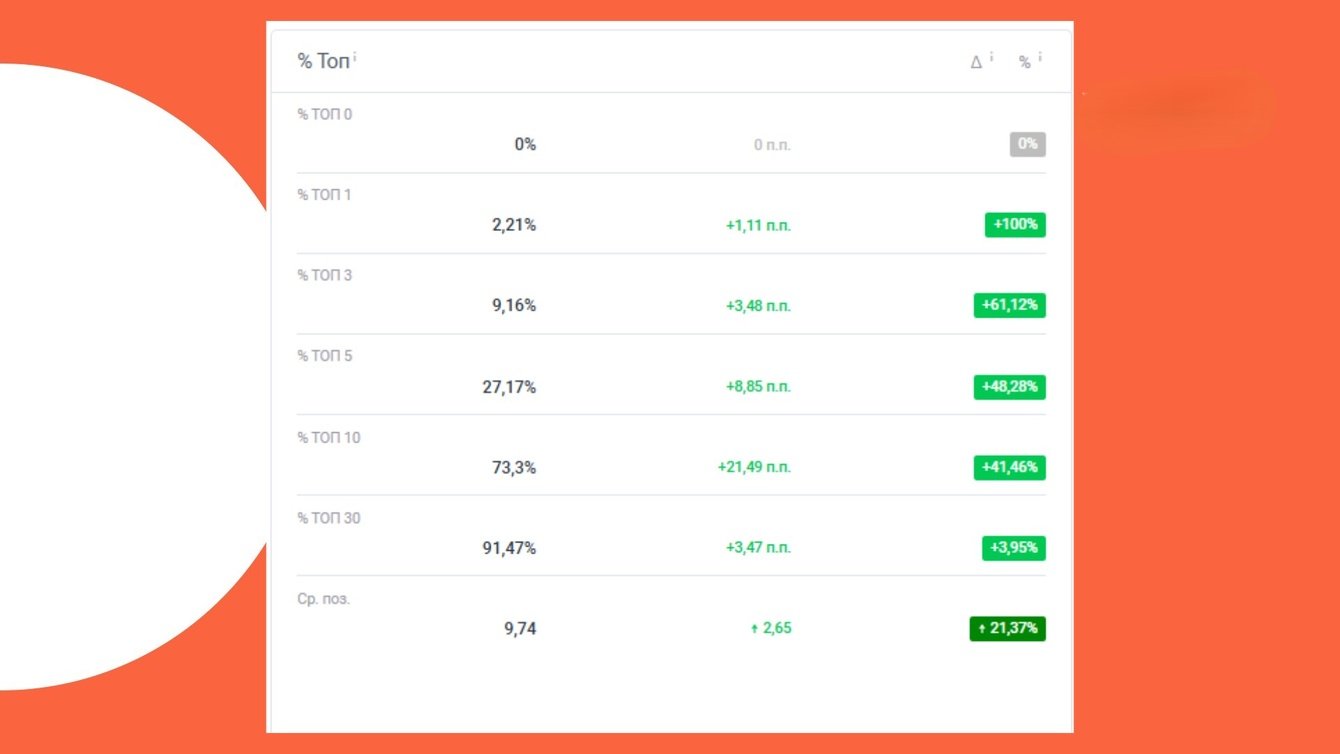 В Google наблюдается еще более впечатляющая положительная динамика по позициям.