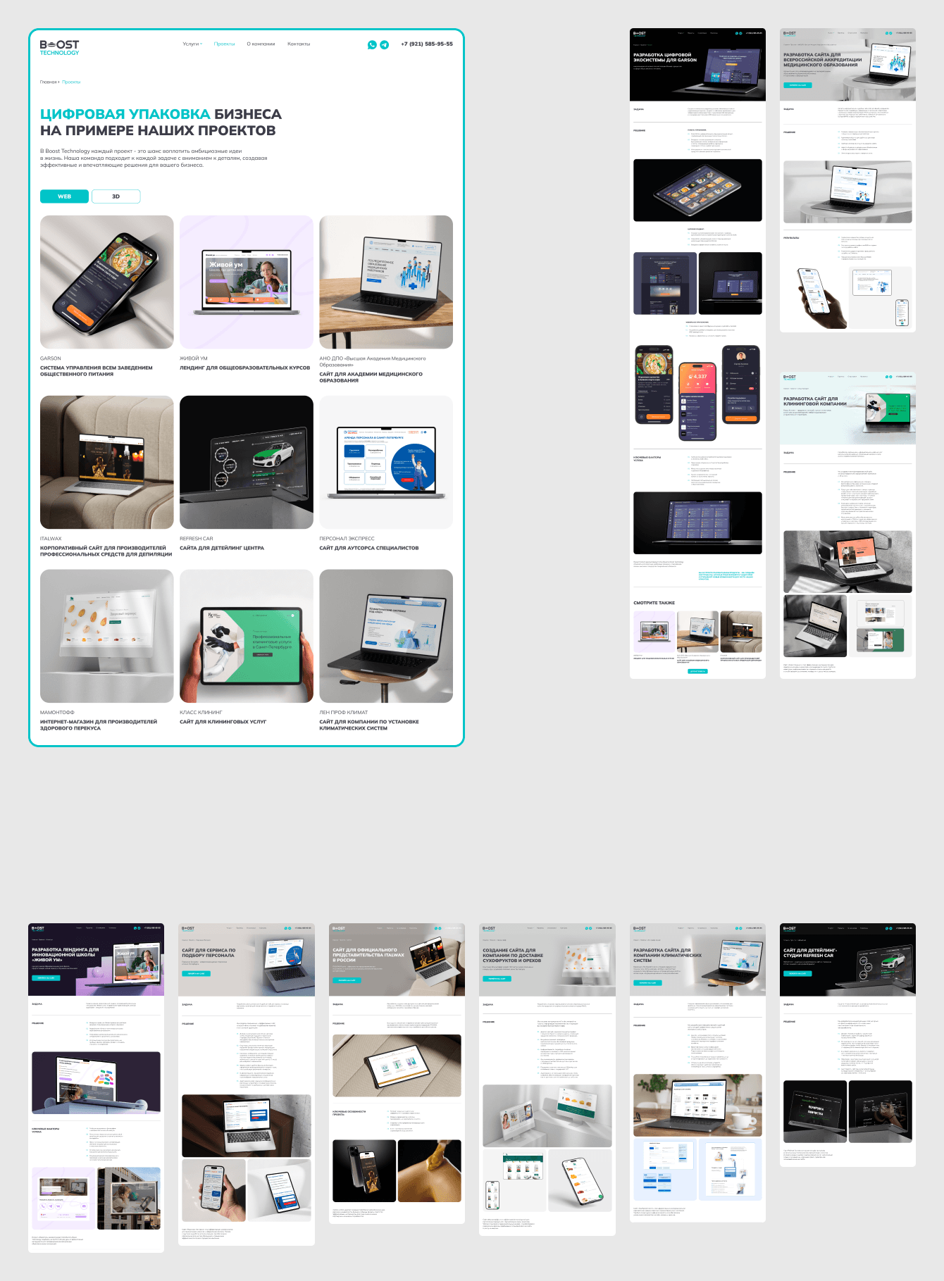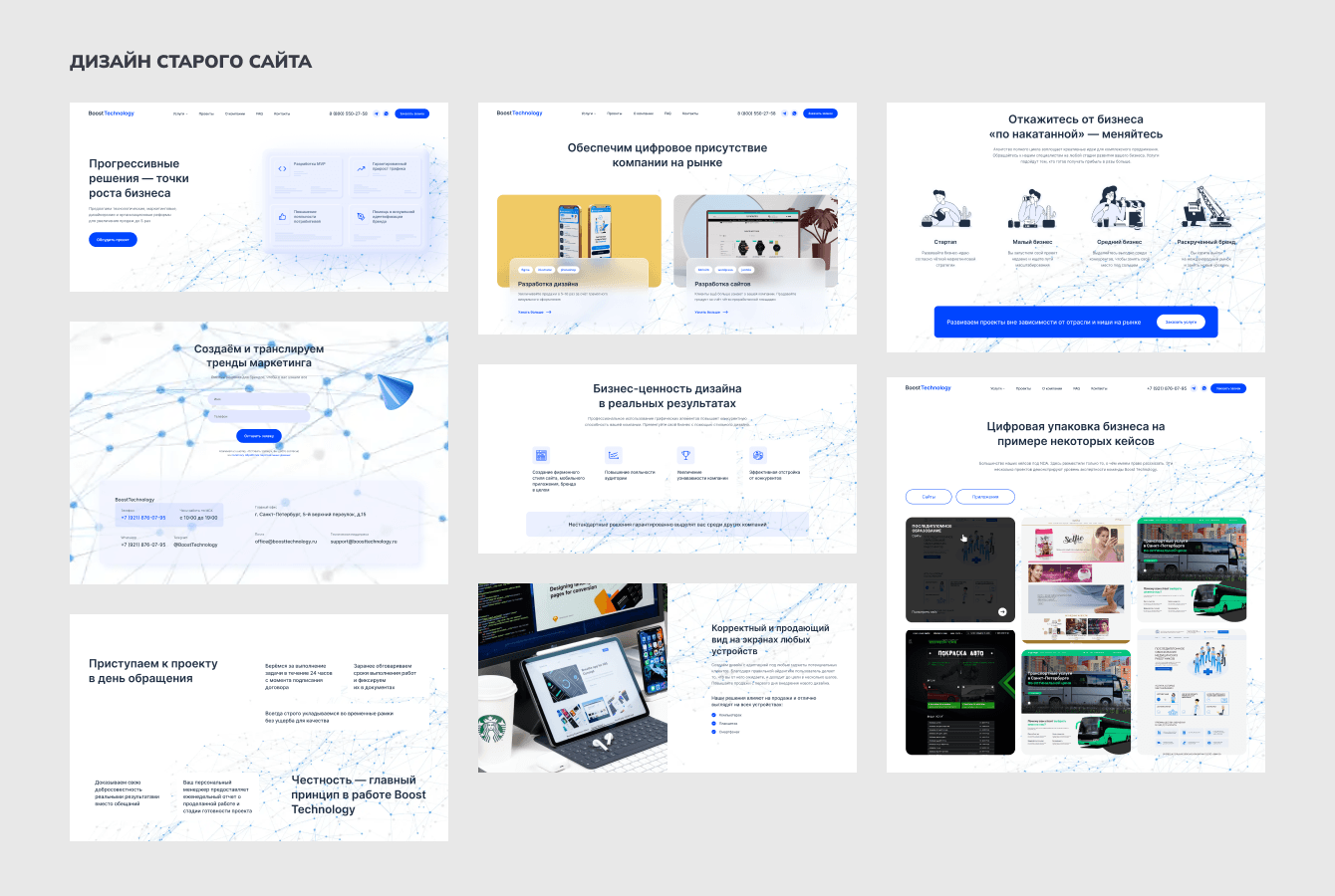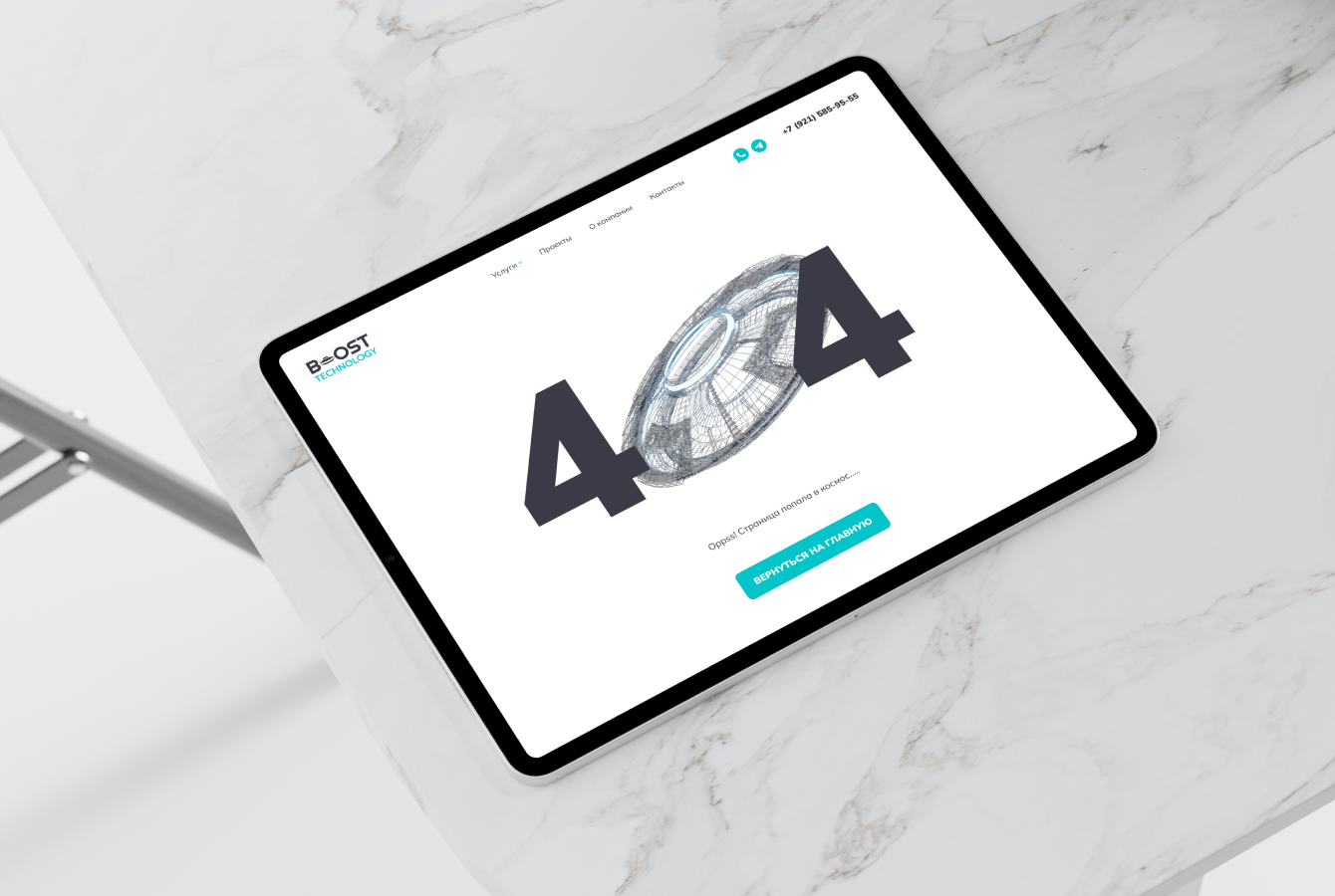 К 2024 году существующий сайт Boost Technology перестал соответствовать статусу компании и текущим потребностям бизнеса. За последние годы компания выросла, собрав портфолио различных проектов в сфере разработки сайтов, мобильных приложений, а также 3D-анимации и визуализации. Старый дизайн сайта не отражал уровень экспертизы компании и не позволял эффективно конвертировать трафик в заявки.