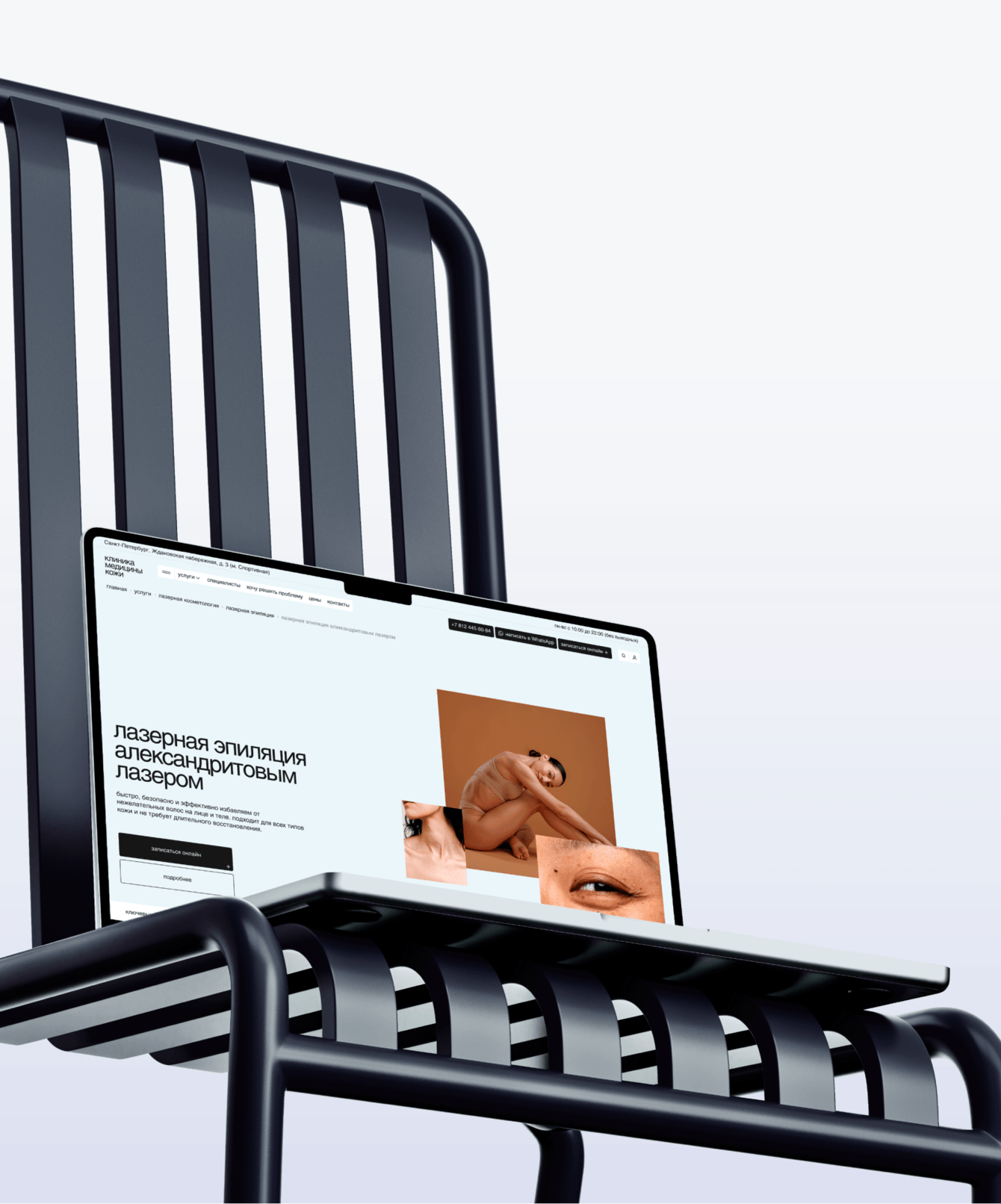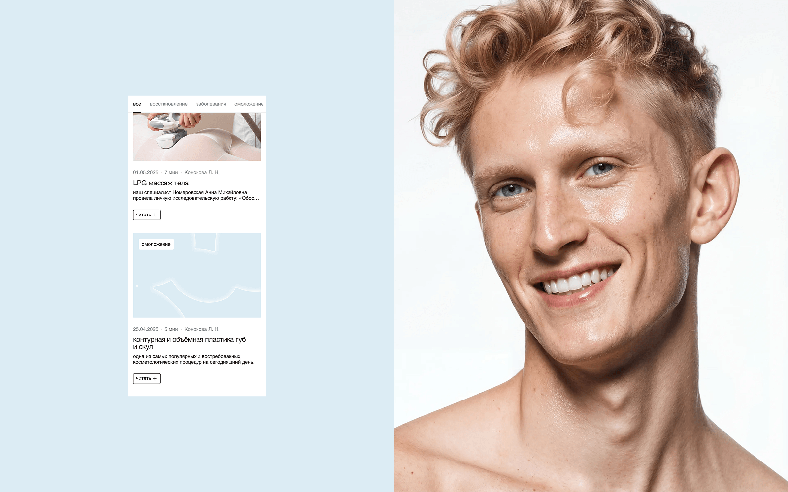 1. Соблюсти в визуале баланс между медициной и эстетикой. Дизайн должен вызывать доверие к серьёзной клинике, но при этом ассоциироваться с красотой и заботой о себе.