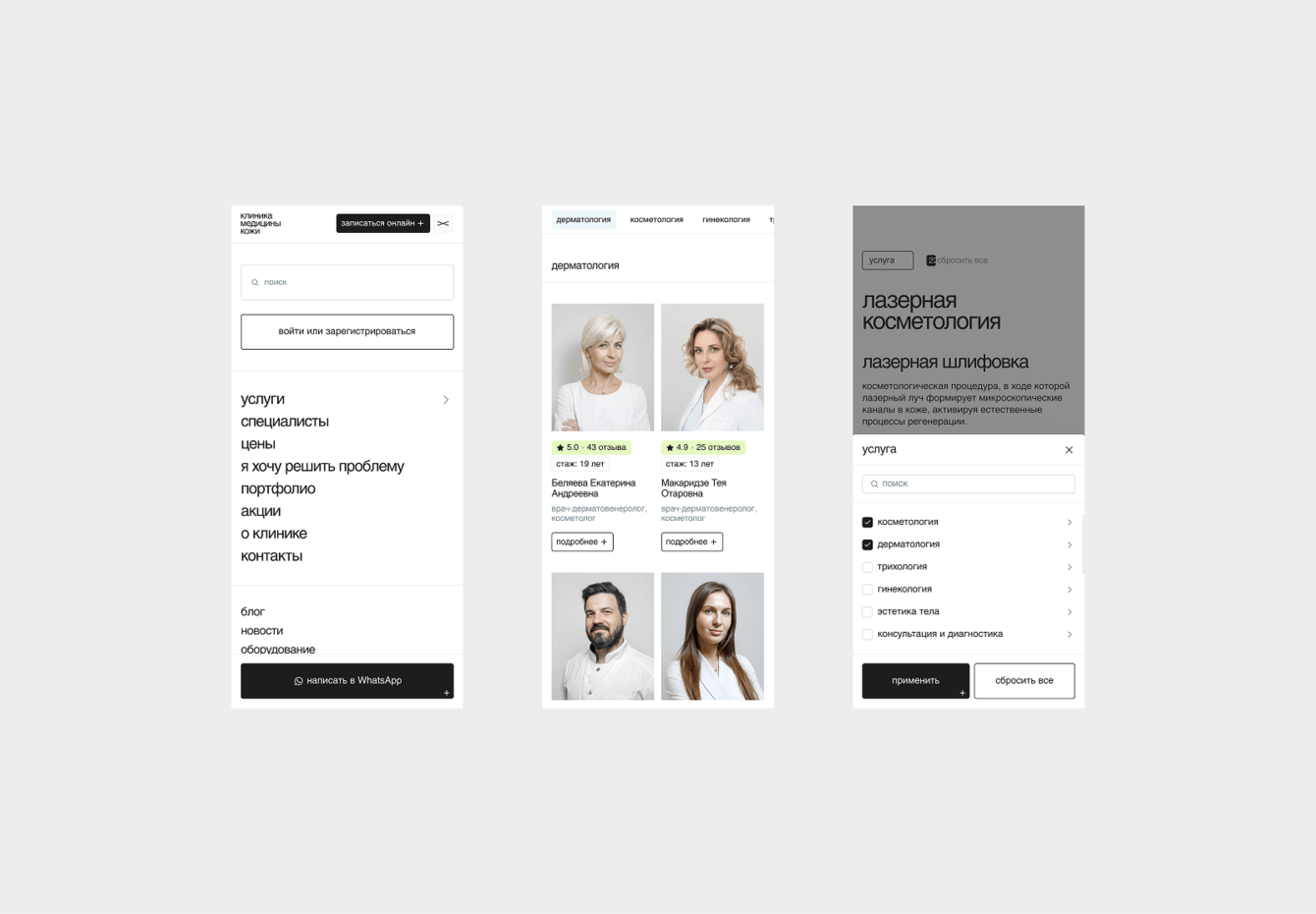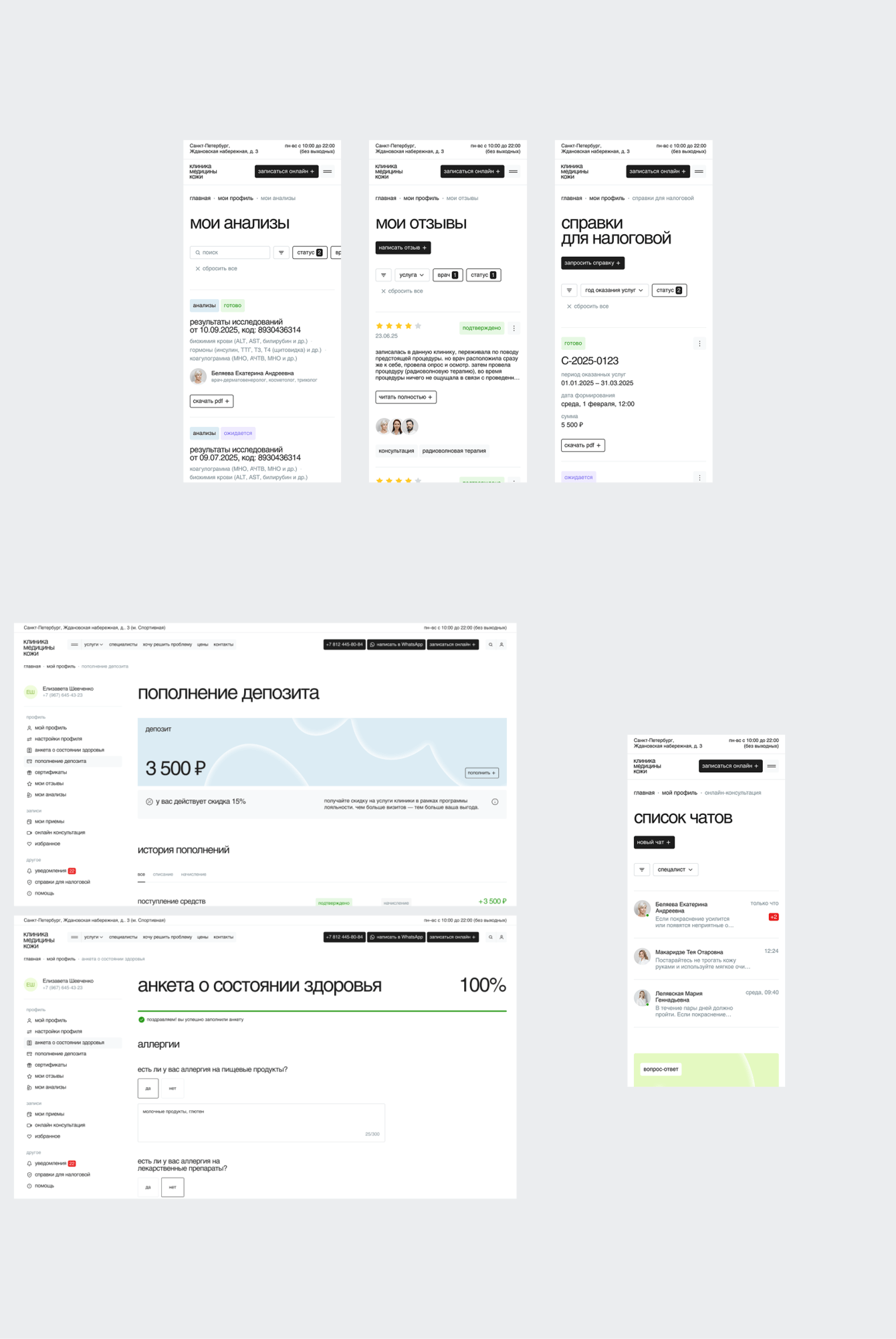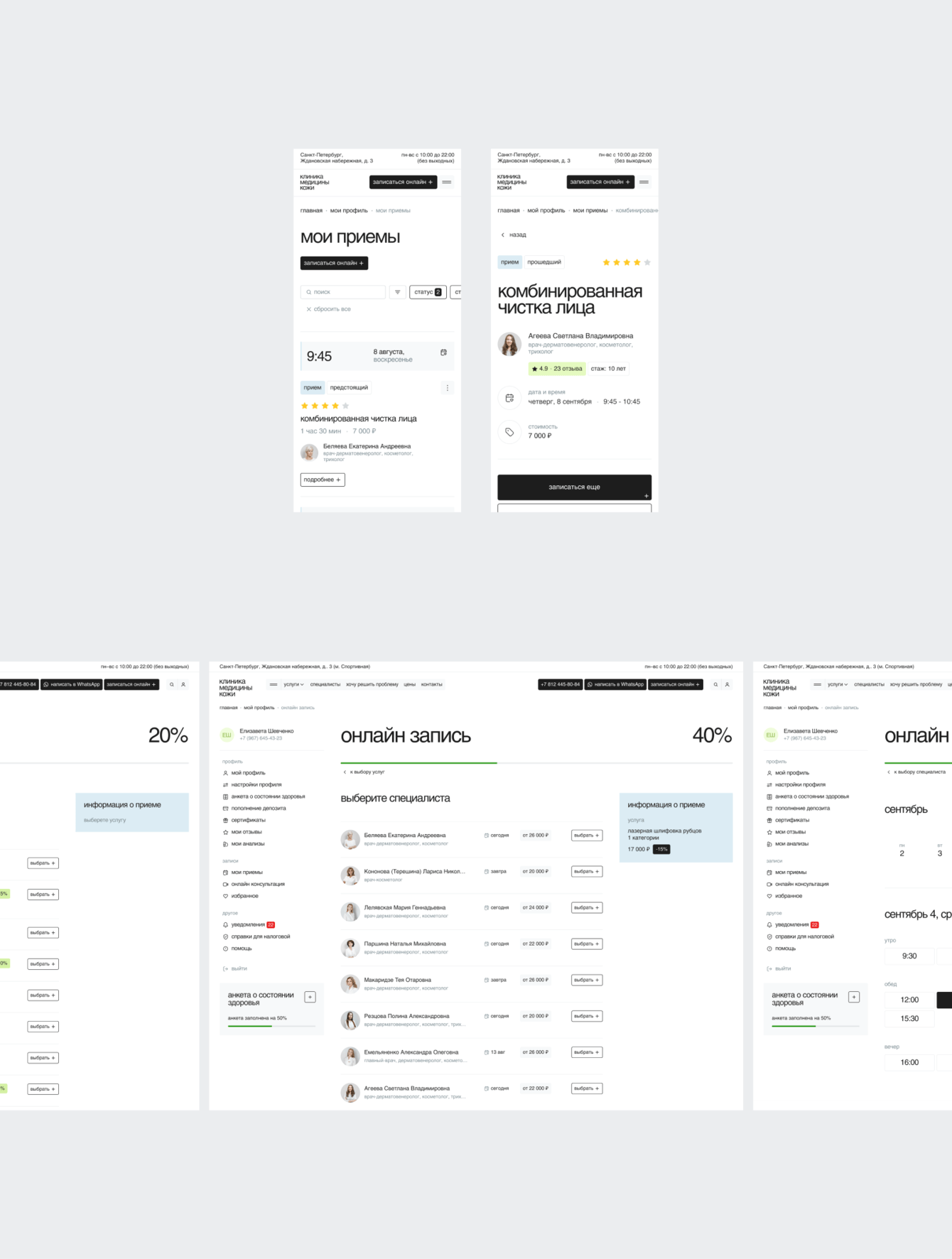При этом визуал не перегружен и работает на доверие. Есть ощущение аккуратной, современной клиники, где всё понятно и спокойно. В итоге это не просто редизайн, а нормальная переработка продукта — когда пользователю стало проще, а бизнесу выгоднее.