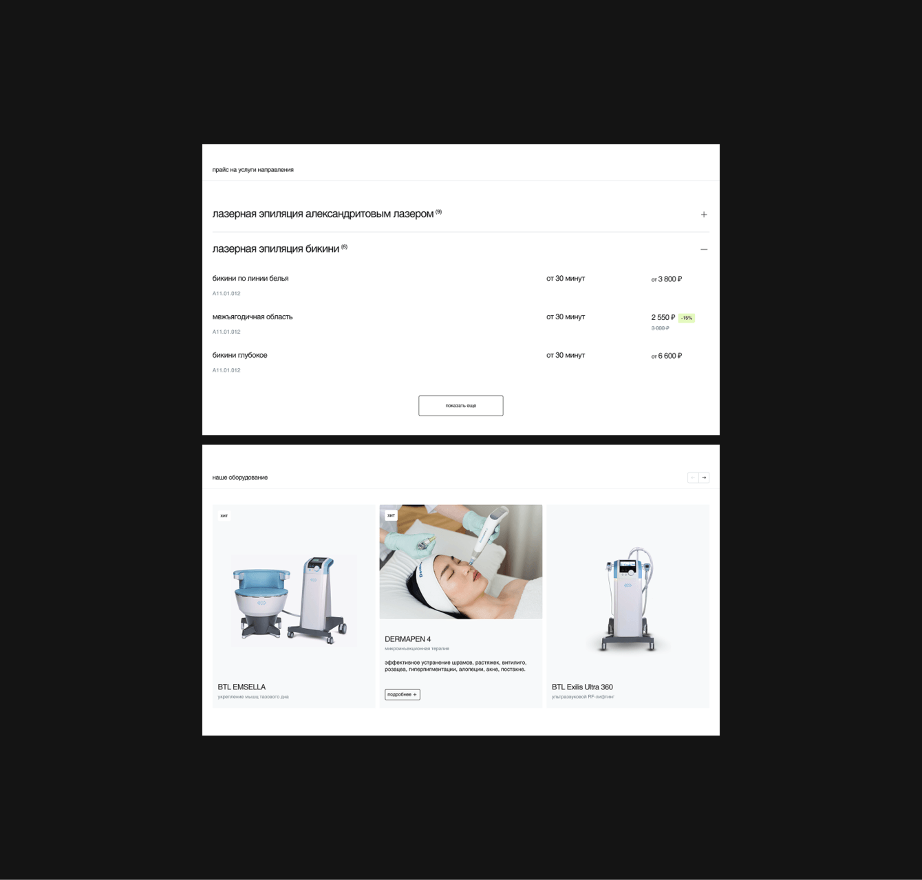 Чётко обозначили разницу между первичным и вторичным приёмом, чтобы не вызывать у посетителей вопросов, почему цены разные. Добавили блоки с уникальным оборудованием — его часто хвалили во время глубинных интервью.