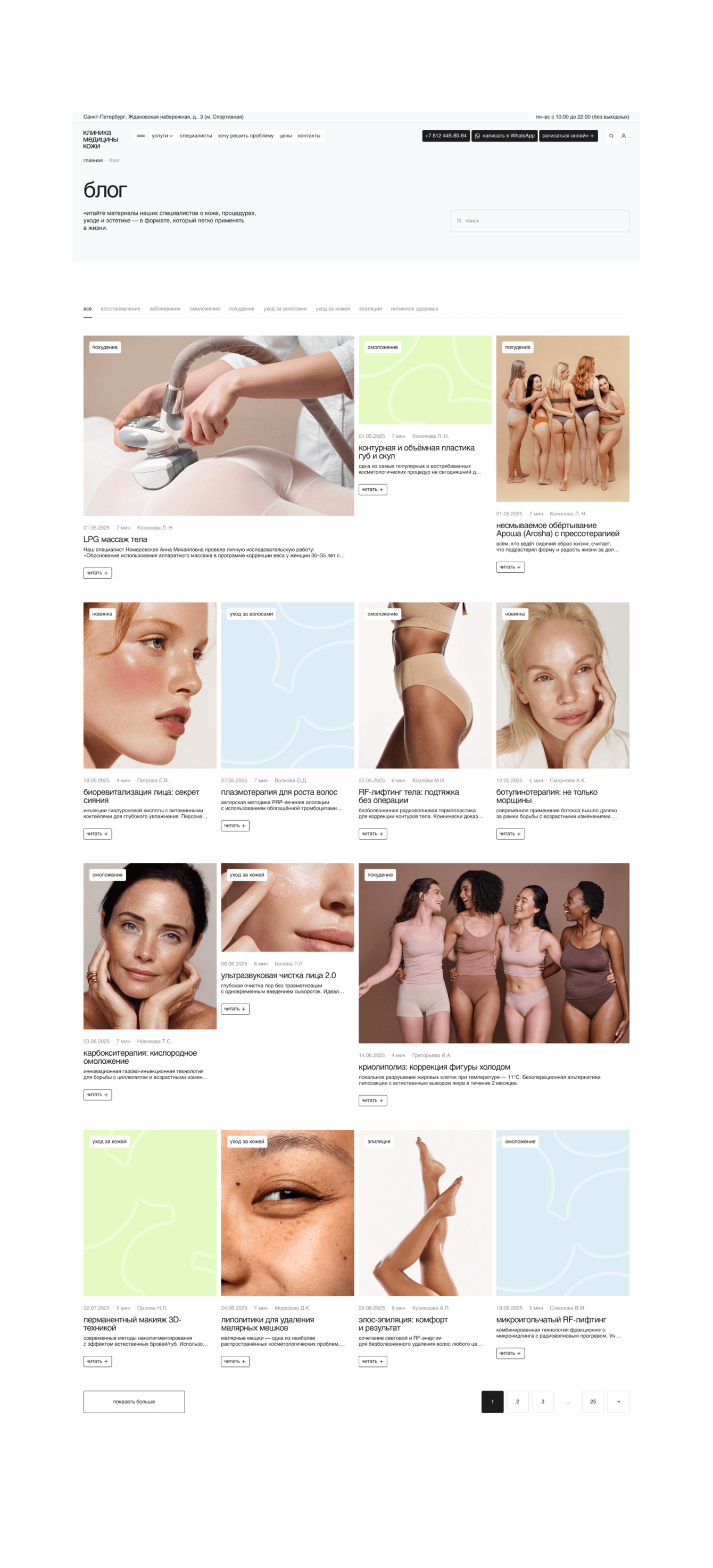 У клиники большое количество услуг и главная сложность — огромное количество текста должно выглядеть легко и эстетично. Расскажем, как добивались этого.