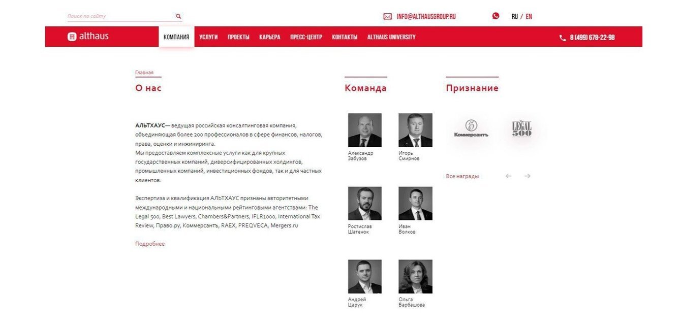 Выражаем благодарность за разработку нового сайта Группы компаний Альтхаус