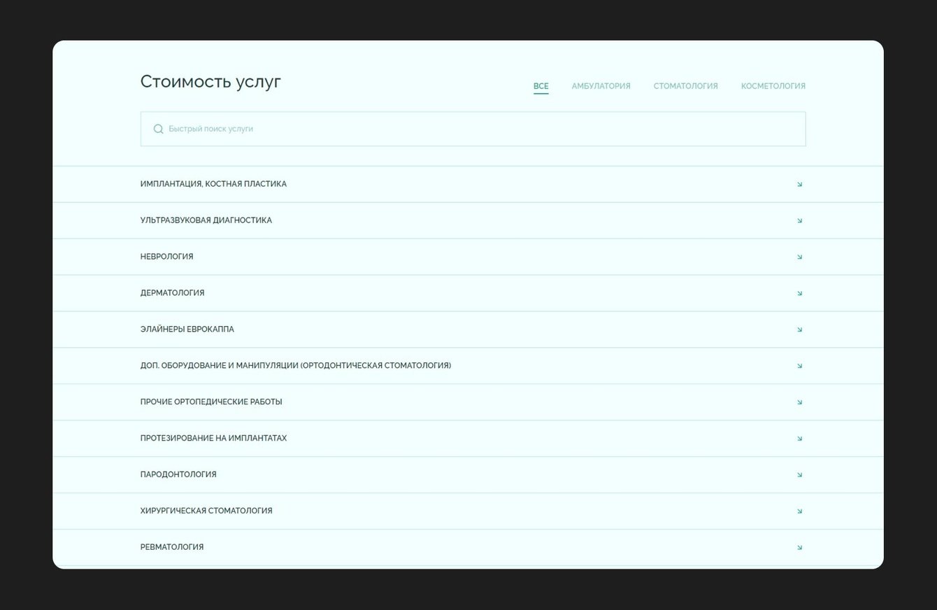 - сделать удобный поиск по услугам клиники