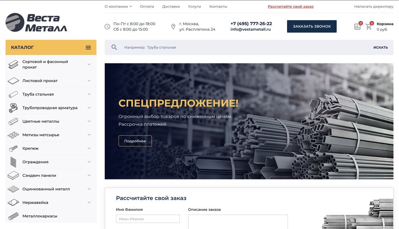 Редизайн сайта по металлопрокату с расчетом на SEO продвижение.