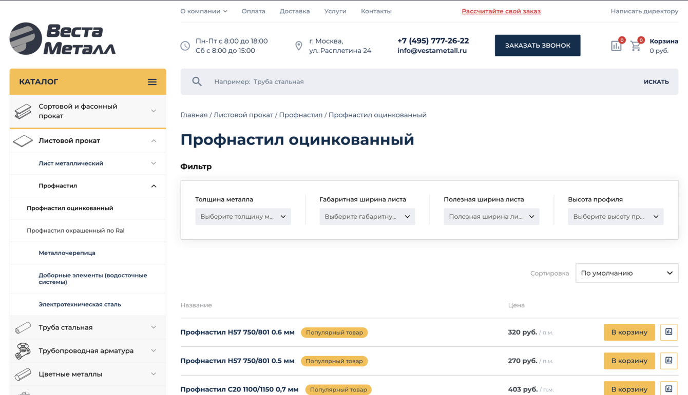 На платформе изначального сайта было трудно проводить работы связанные с SEO-оптимизацией. Поэтому, было принято решение перенести проект на CMS MODX, которая легко справляется с этой задачей. На старом сайте было около 6 000 позиций металла и при переносе добавили еще около 4 000 позиций от поставщиков.