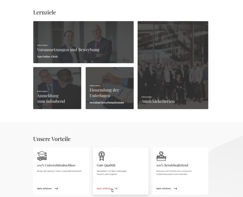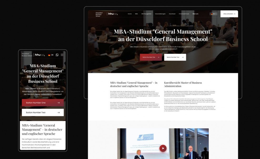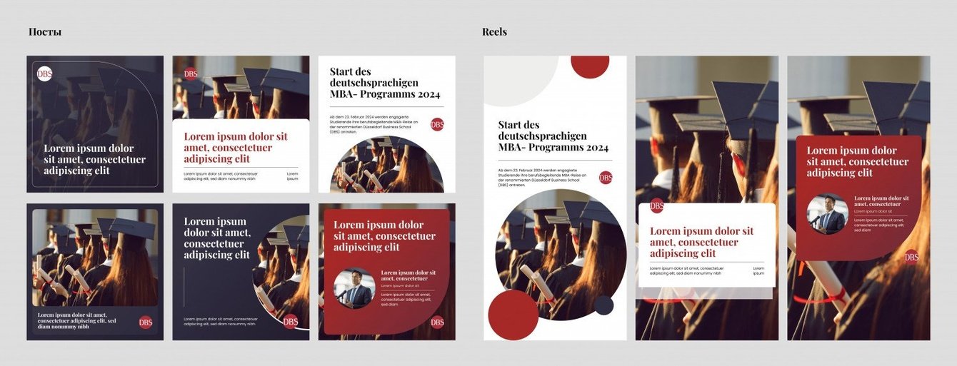 Дюссельдорфская бизнес-школа обратилась к нам в студию за редизайном сайта и подготовкой визуального контента для соцсетей. Важно было сделать всё по-серьезному: строгий стиль, дипломатичные цвета, сдержанные креативы.