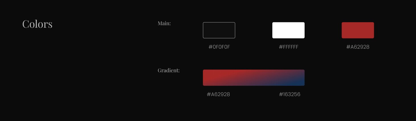 Основным цветом выбрали спокойный красный. Он достаточно насыщенный, чтобы привлекать внимание, но при этом хорошо подходит для фона. В дизайне использовали градиент от красного к темно-синему. Хоть цвета классические, переход между ними добавляет динамики и позволяет выделять смысловые блоки.