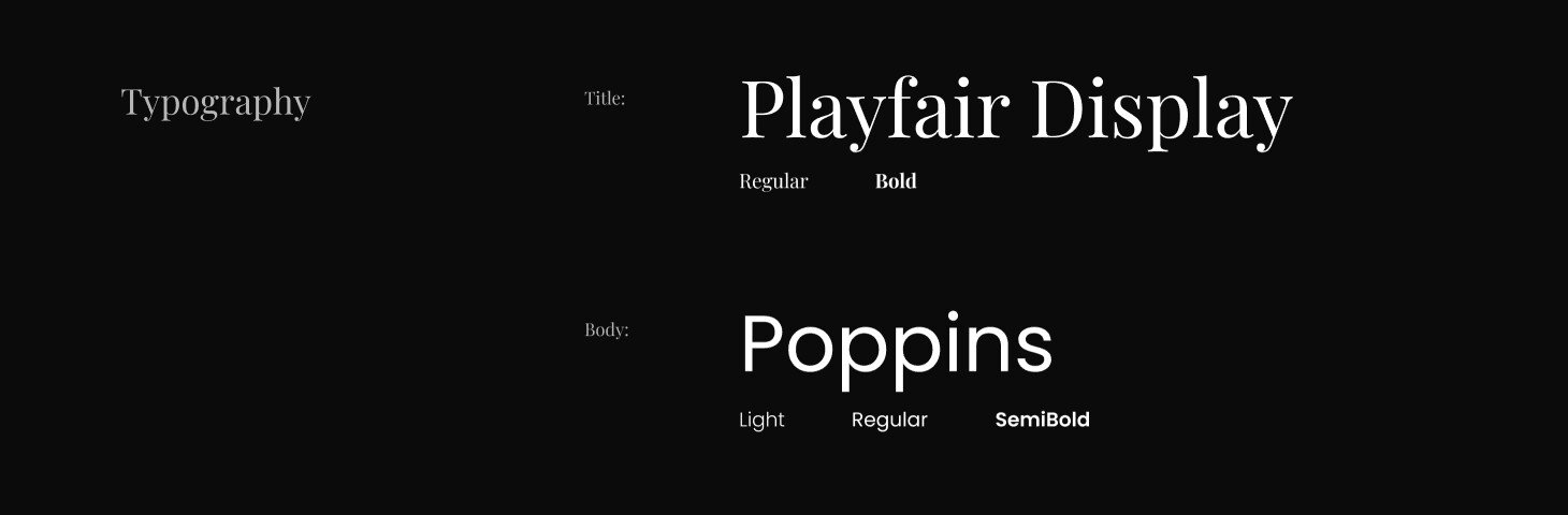 В больших текстах штрихи Playfair Display теряются, текст становится сложно читать. Поэтому для основных блоков выбрали Poppins — это геометрический шрифт без засечек, который применяют в модульных и минималистичных веб-сайтах. Сочетание двух разных по начертанию стилей выглядит необычно и современно.