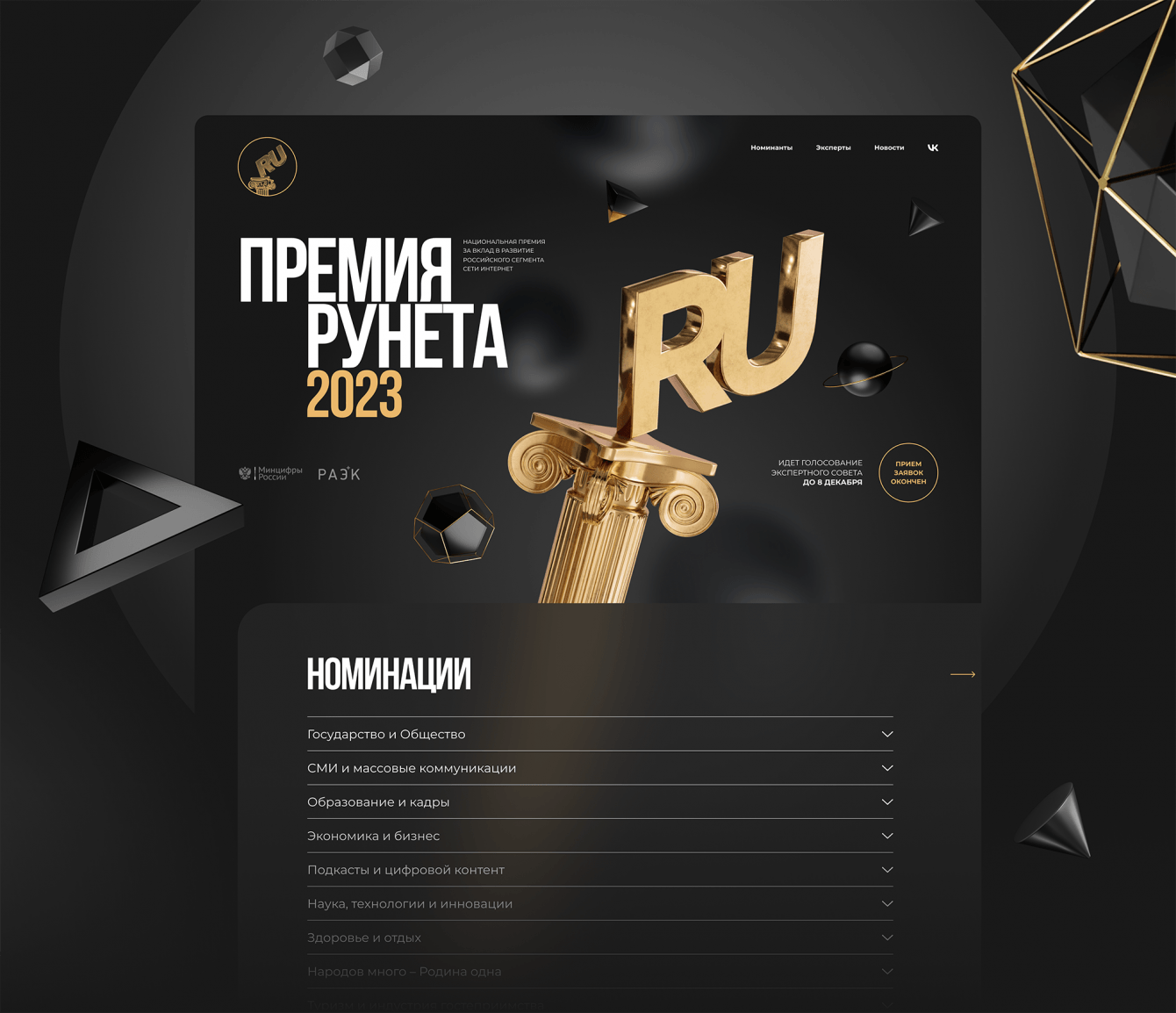 Редизайн сайта премии должен был решить следующие бизнес-задачи: