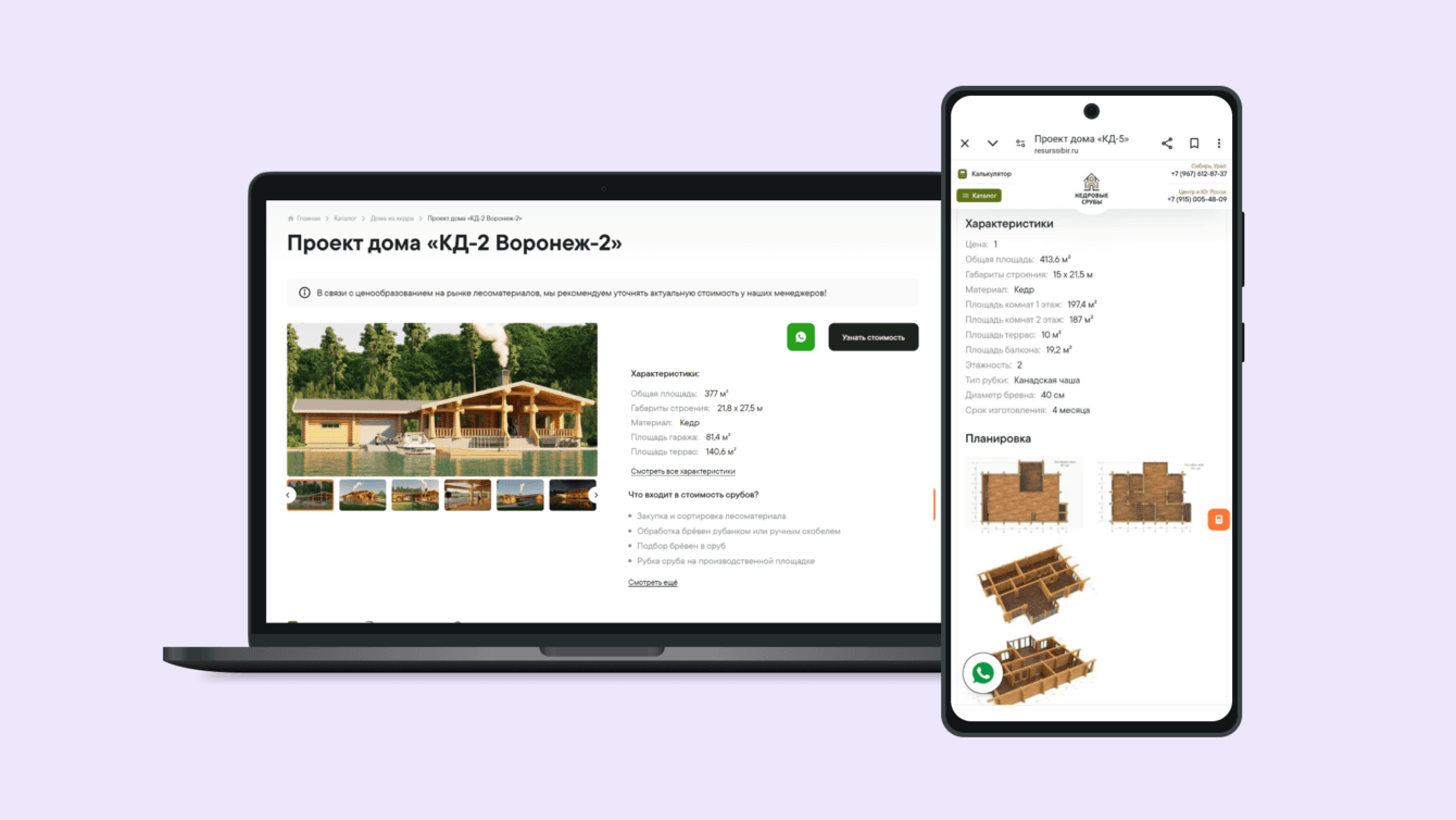Новый сайт «Кедровые срубы» позволяет не только информировать потенциальных покупателей, но и стимулировать их к совершению покупки, укрепляя репутацию компании как лидера в строительстве домов из кедра. Улучшенный интерфейс, удобный функционал и эстетика сайта способствуют увеличению конверсий и росту доверия к бренду.