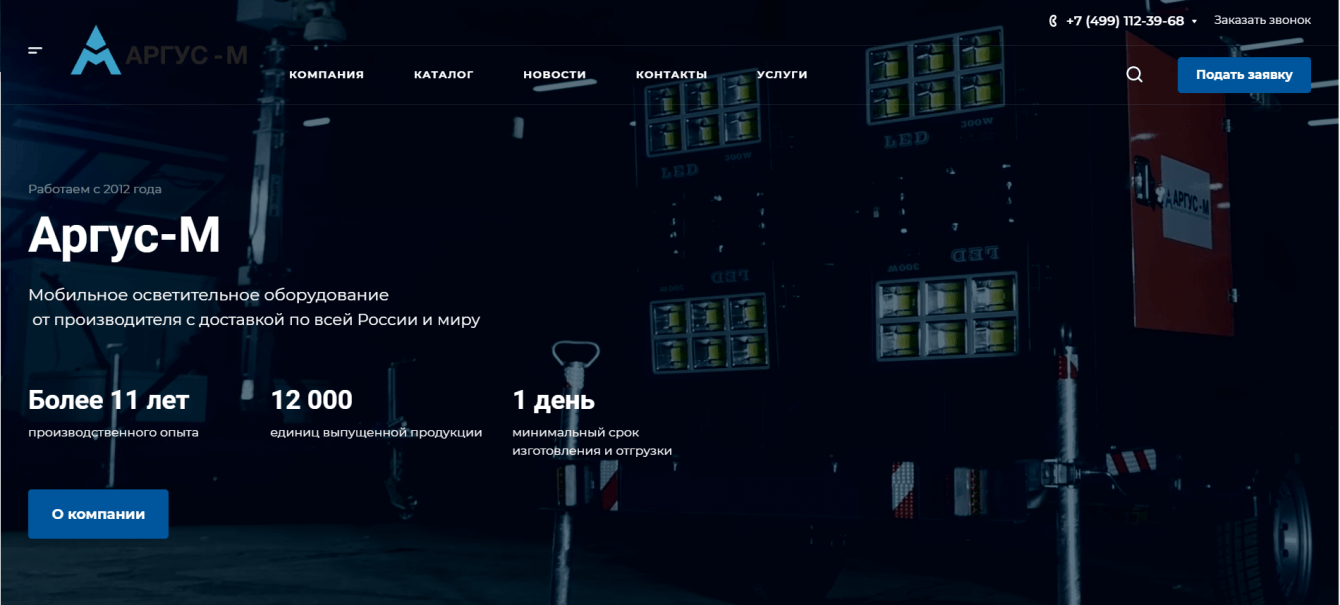 Клиент, российский производитель мобильного светового оборудования, решил сделать редизайн своего основного сайта, так как предыдущий был слишком прост по дизайну и не слишком удобен с точки зрения навигации. Нужен был корпоративный сайт с каталогом, но без возможности покупки.