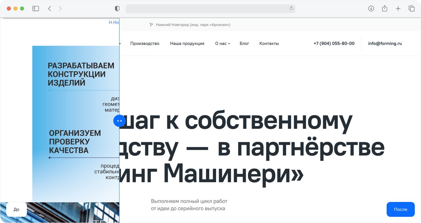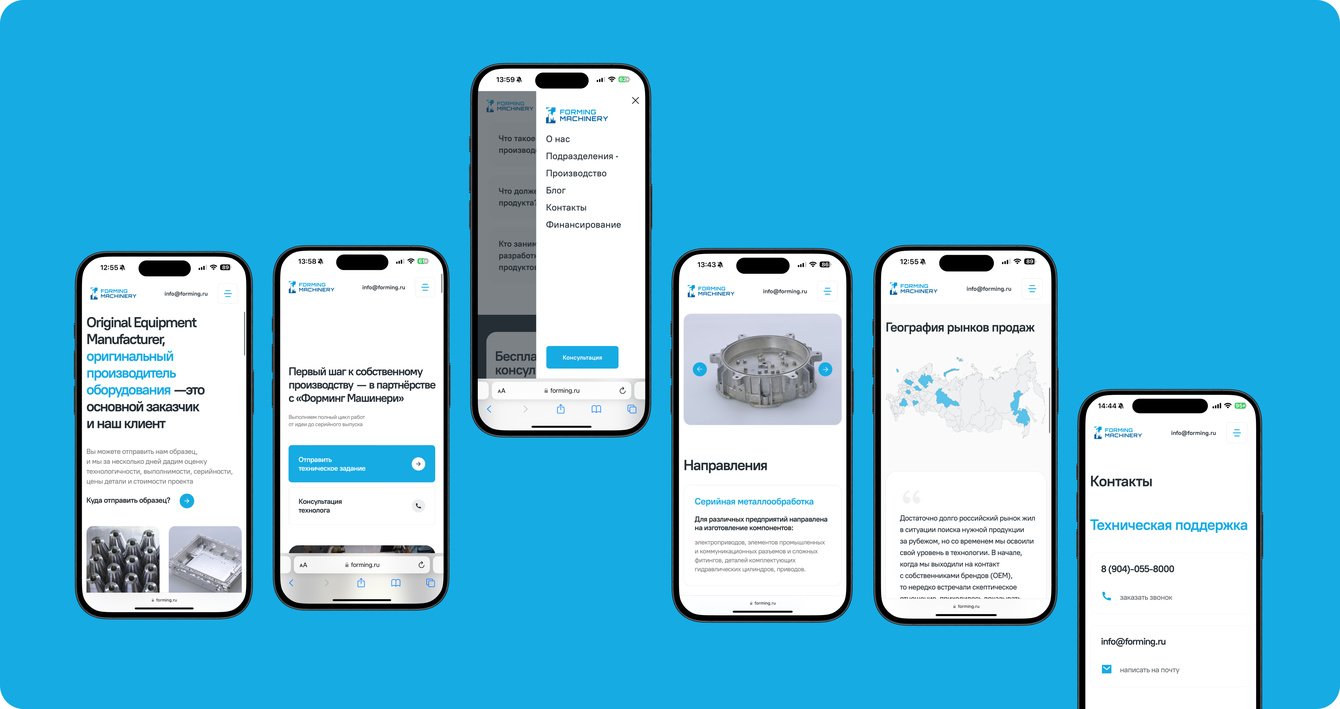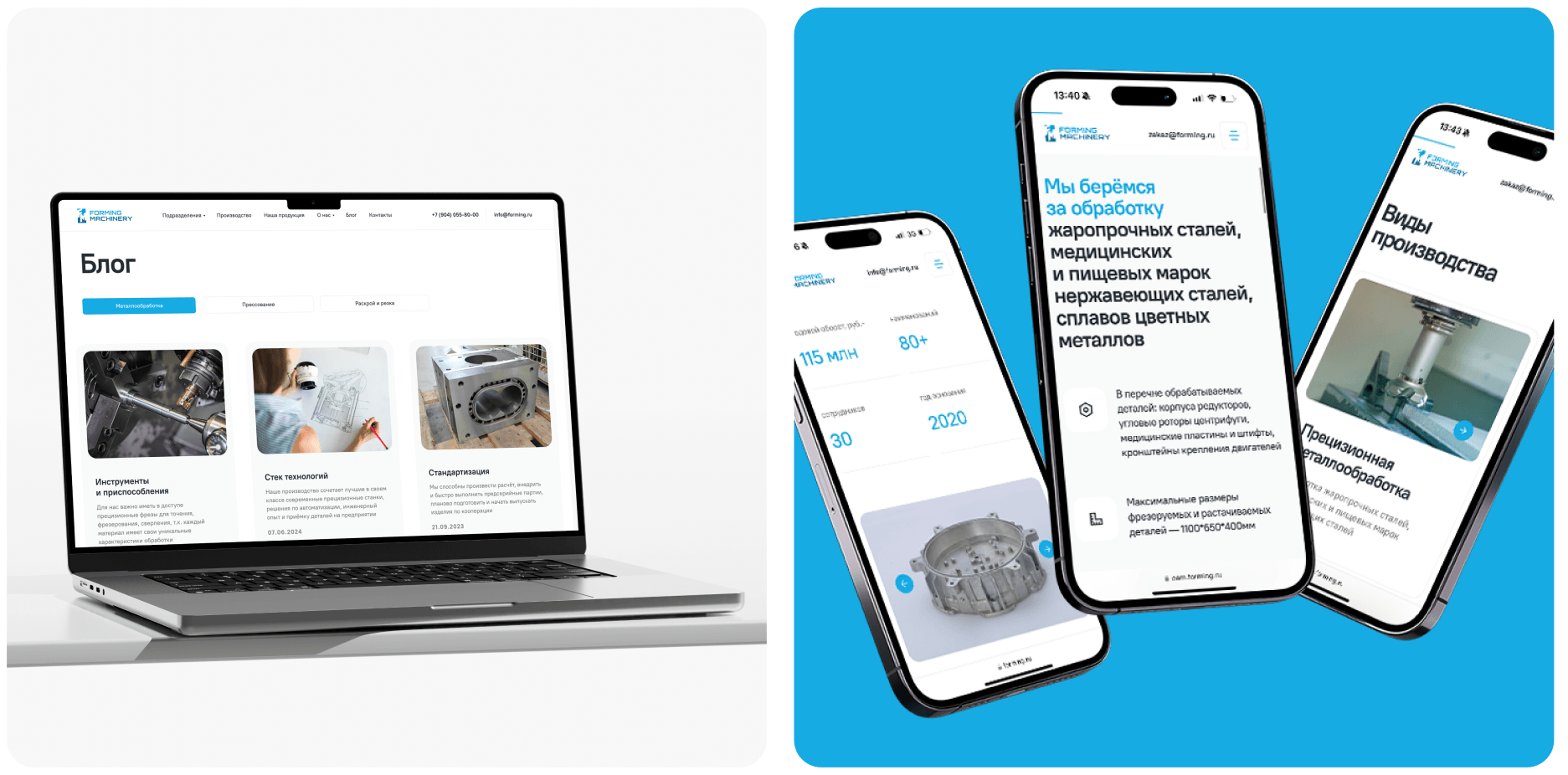 В итоге Forming Machinery получили сайт, который полностью отвечает запросам быстро развивающейся производственной компании — в том числе приводит новых крупных клиентов: