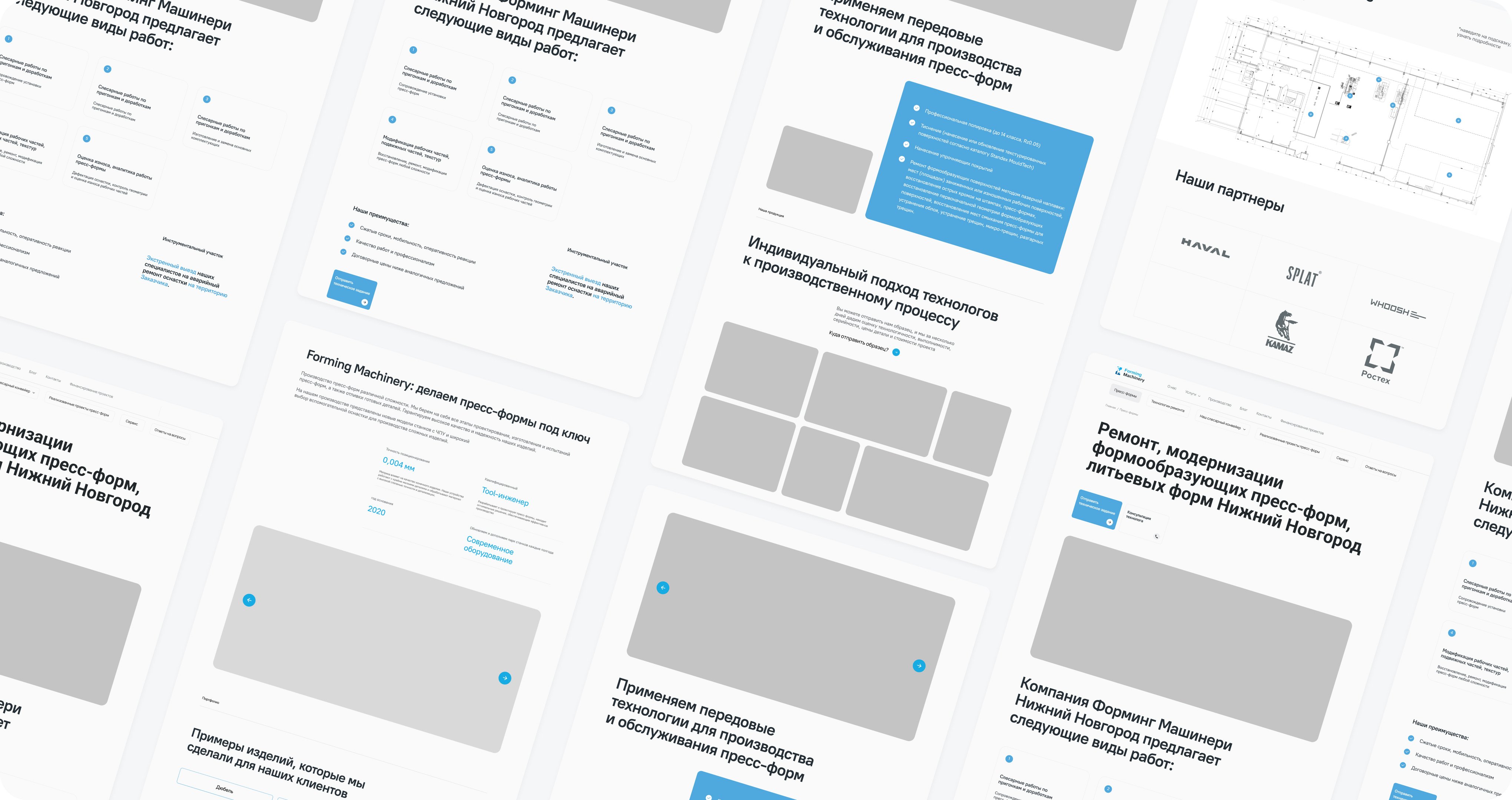 Производственной компании Forming Machinery был необходим редизайн сайта. Основная причина обращения - это низкая конверсия старого ресурса трафика. К тому же количество направлений деятельности росло, а текущая упаковка в Digital оставляет желать лучшего. Отсутствие чёткой структуризации услуг, информационный, а не продающий характер описаний, затрудняли понимание целевой аудиторией ценности компании и масштаба ее производственных мощностей. Планы на запуск новых ниш требовали гибкого решения для интеграции новых направлений.