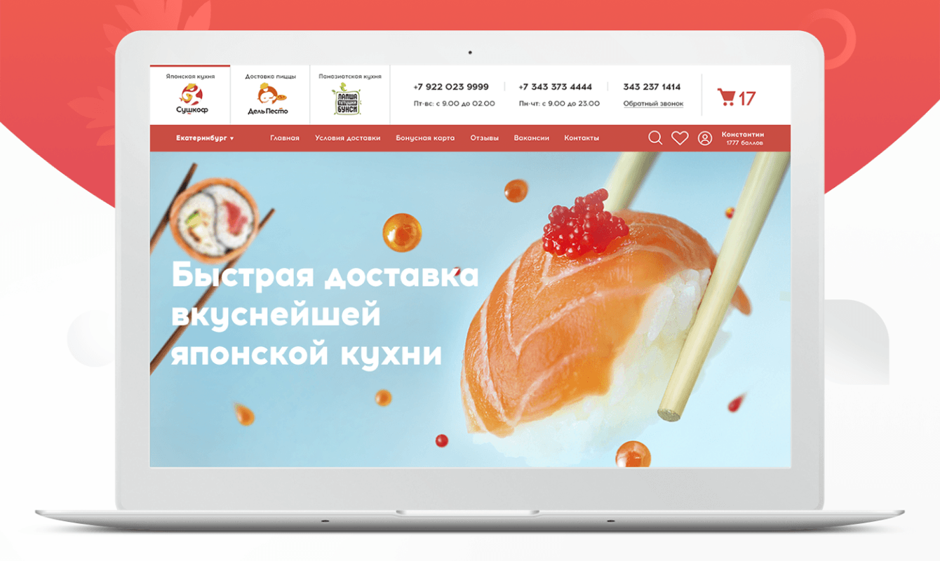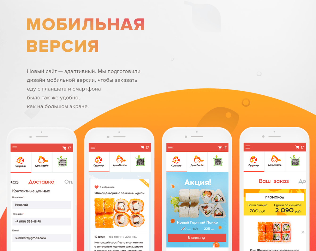 Провести редизайн сайта ресторана «Сушкоф» и сделать адаптивную версию.