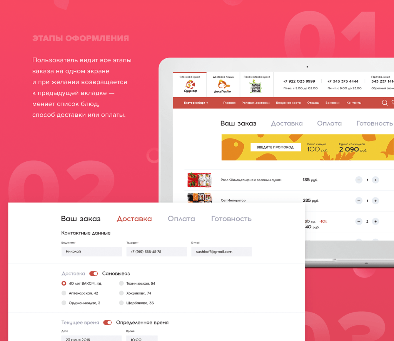 Мы переосмыслили процесс оформления заказа, позаботились об удобстве пользователей на всех устройствах и подготовили иконки для иллюстрации оформления заказа и преимуществ.