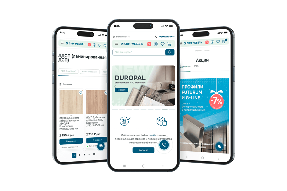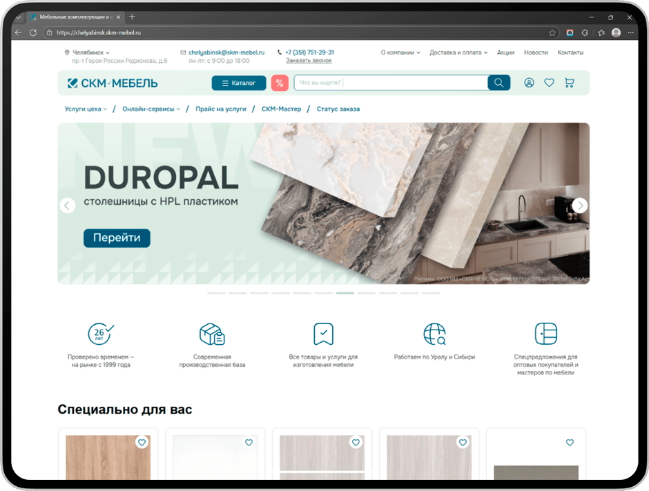Особое внимание уделили мобильной версии: ведь пользователи часто работают с сайтом в цеху, на складе или в дороге.