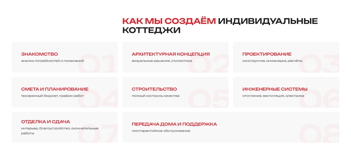 Сайт должен показывать для клиентов полный цикл строительства: проектирование, возведение и сопровождение кирпичных домов премиум-класса.