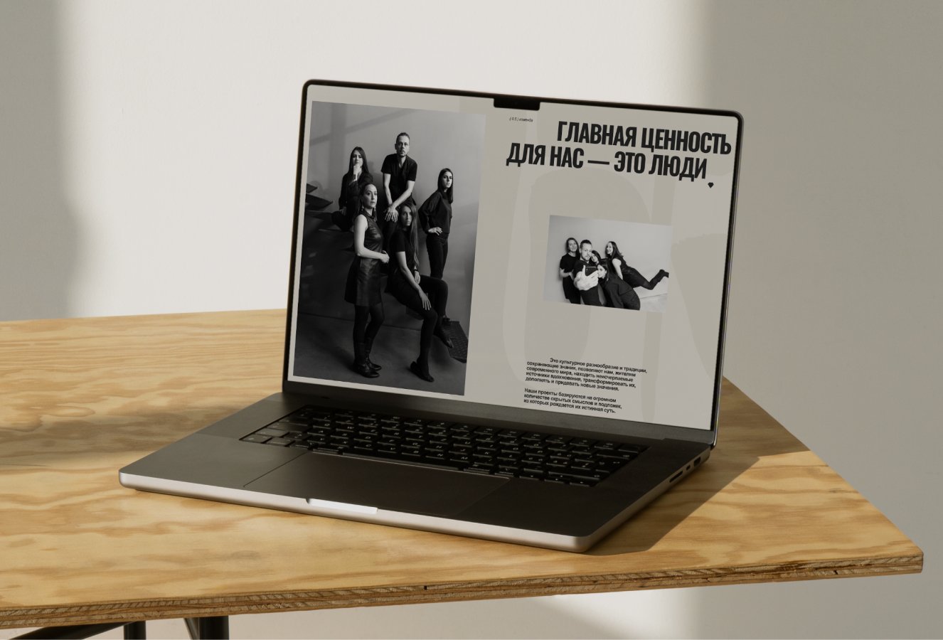 Ключевая задача и пожелание клиента — сайт должен стать отражением и продолжением философии студии: быть минималистичным, но выразительным, а также представлять команду.