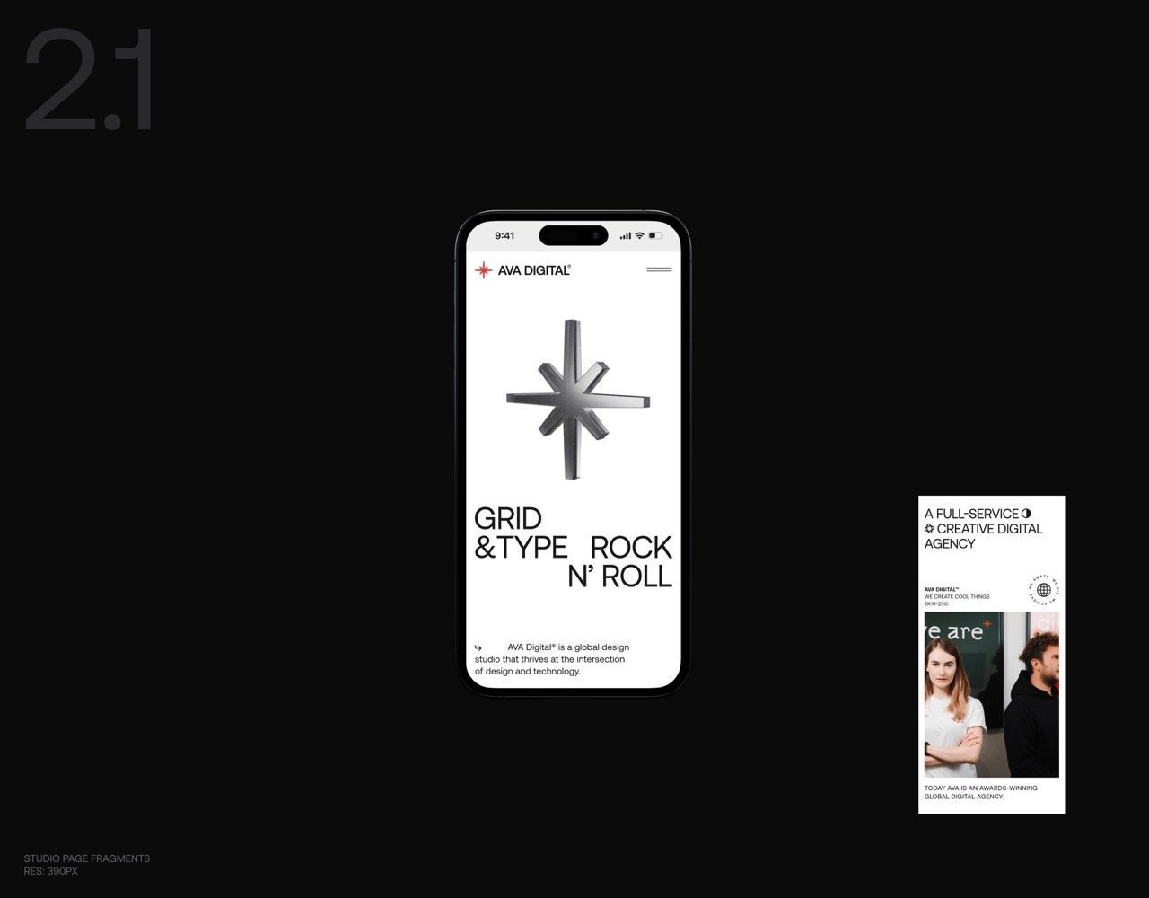 Чтобы органично заполнить пространство, активно использовали контрформу. Главным акцентом стал контент — на передний план вынесли проекты AVA и то, что мы можем предложить нашим заказчикам. Впервые у нас появился полноценный шоурил и презентационные анимации.