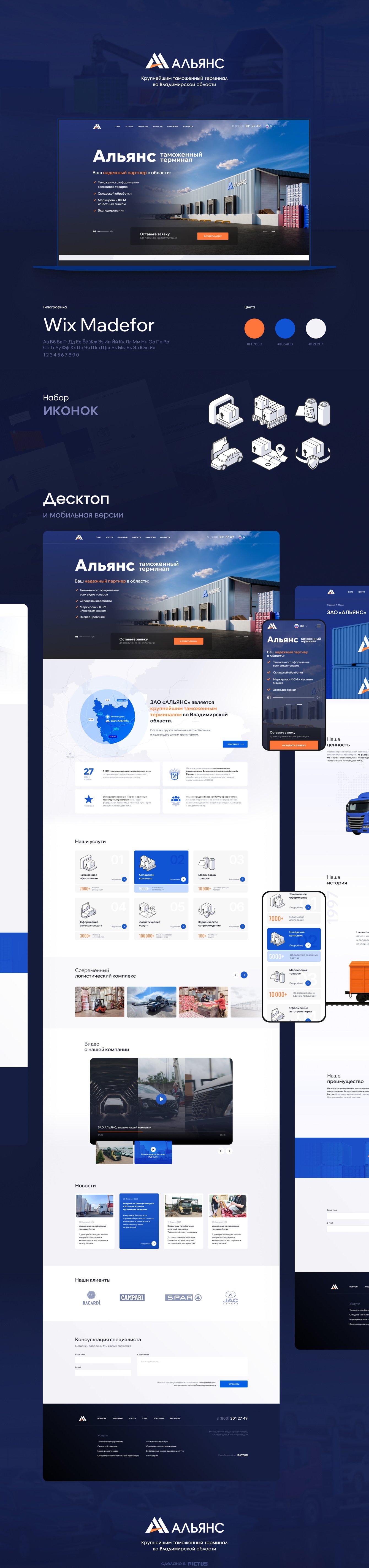 Дизайн был построен на строгой, индустриальной эстетике с элементами технологичности. Выбор цветовой гаммы — сочетание темно-синего, стального серого и акцентного оранжевого — соответствует корпоративной айдентике и внушает доверие.