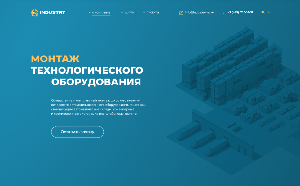 Команда «Индустри Монтаж» обратилась к нам за редизайном сайта: нужно было его осовременить и повысить конверсию, продемонстрировав статус и масштаб компании. Дополнительно стояла задача по разработке новой узнаваемой айдентики.