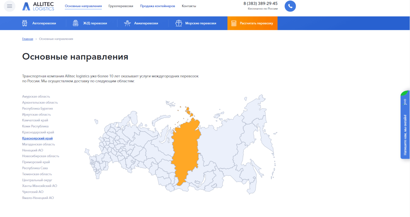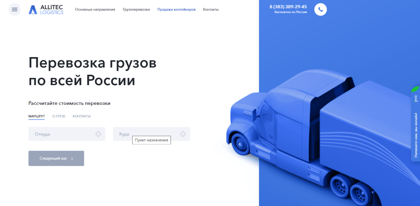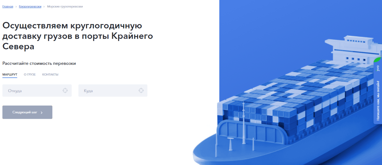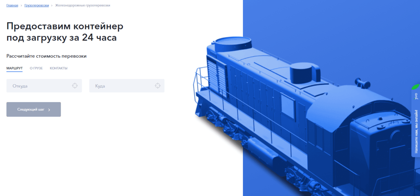 - увеличить количество заявок на 70%, благодаря встроенным в дизайн сайта удобным формам расчета стоимости перевозки;