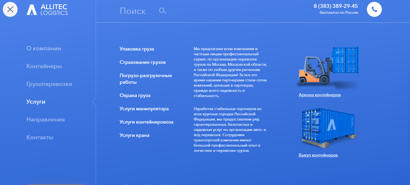 - Подробно и понятно расписали дополнительные услуги компании ALLITEC LOGISTICS (упаковка, страхование и т.п.), что улучшило SEO-показатели сайта и увеличило продажи.