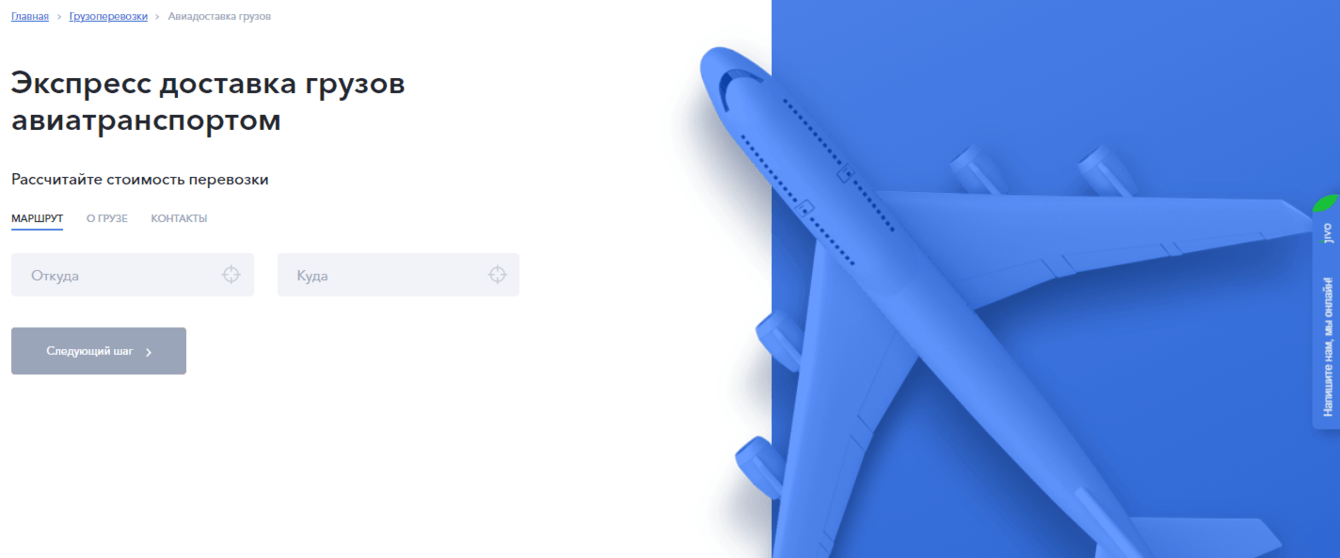 - раздел «Грузоперевозки», оснащенный удобным онлайн-калькулятором для расчета стоимости транспортировки (для клиентов отдела логистики);