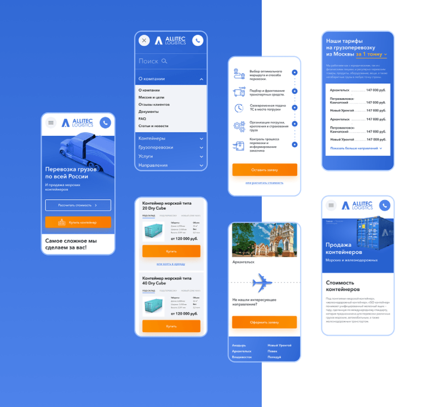 Основной задачей редизайна сайта ALLITEC LOGISTICS было изменение позиционирования бренда с целью создания имиджа крупного и надежного игрока на транспортном рынке.
