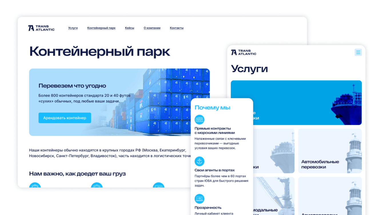 Когда холодные звонки и рекомендации клиентов теряют свою эффективность, аудитория всё чаще формирует образ компании через сайт. ТрансАтлантик обратились к нам именно с такой задачей: провести полный редизайн сайта и сделать его более продающим, современным и выделяющимся среди конкурентов.