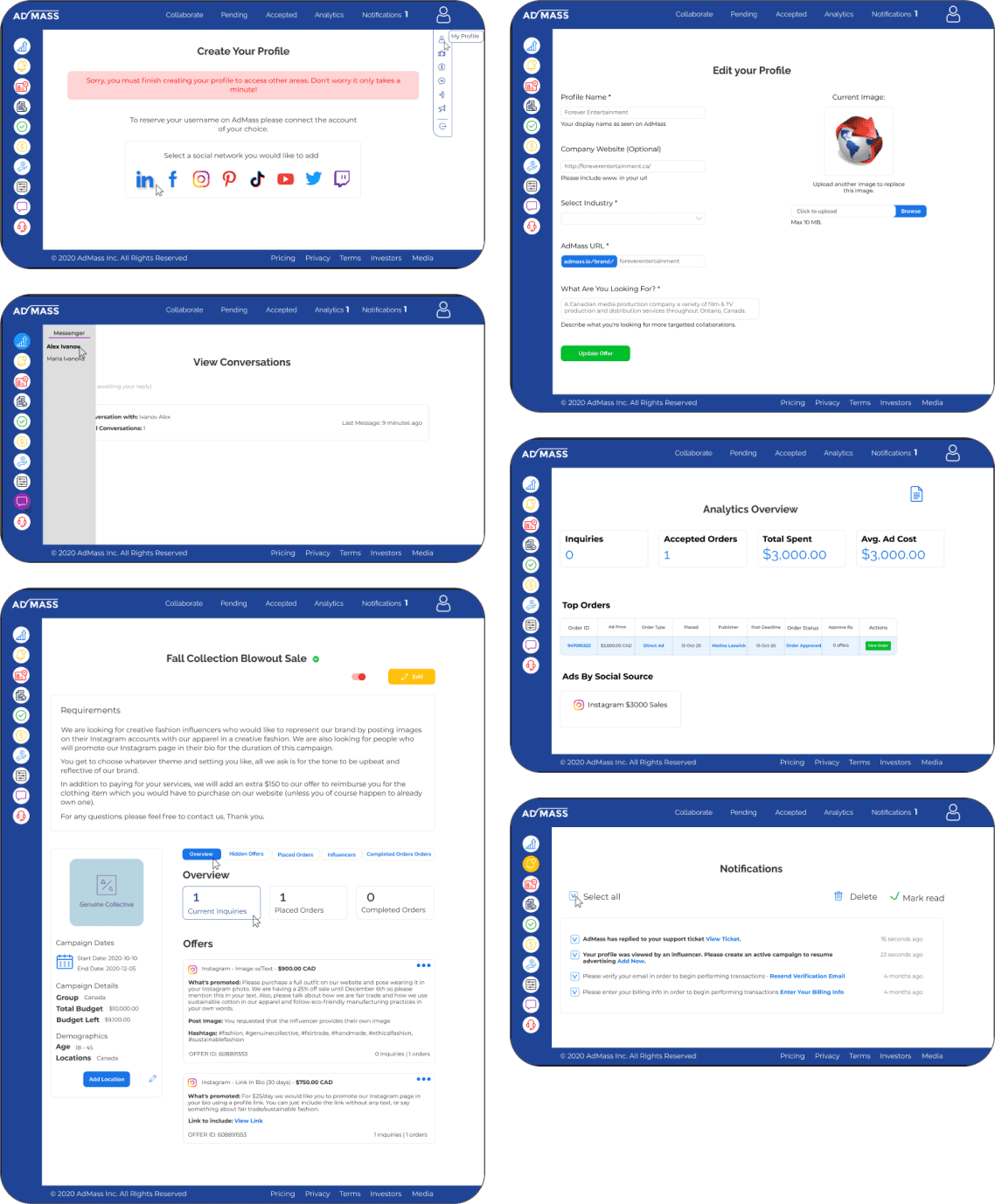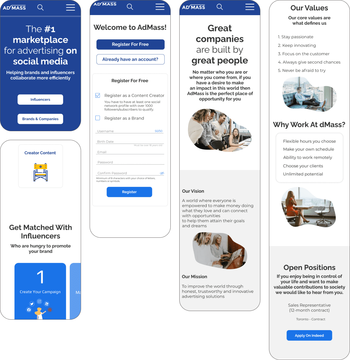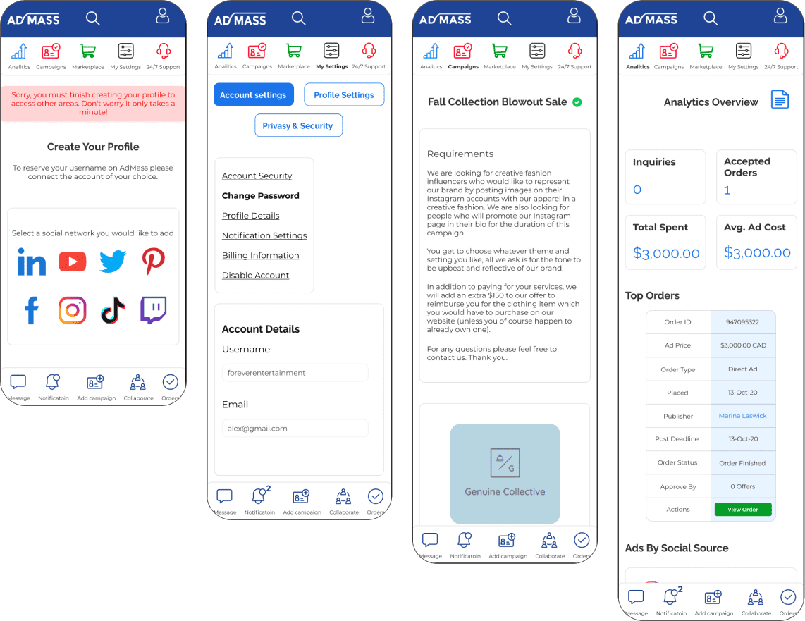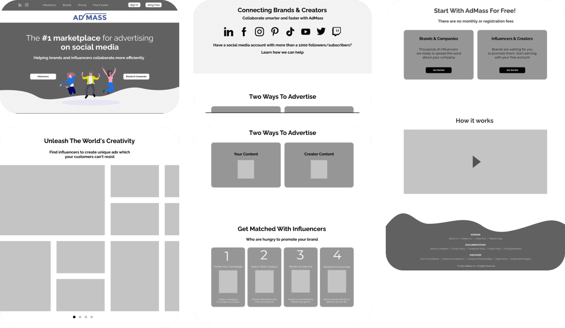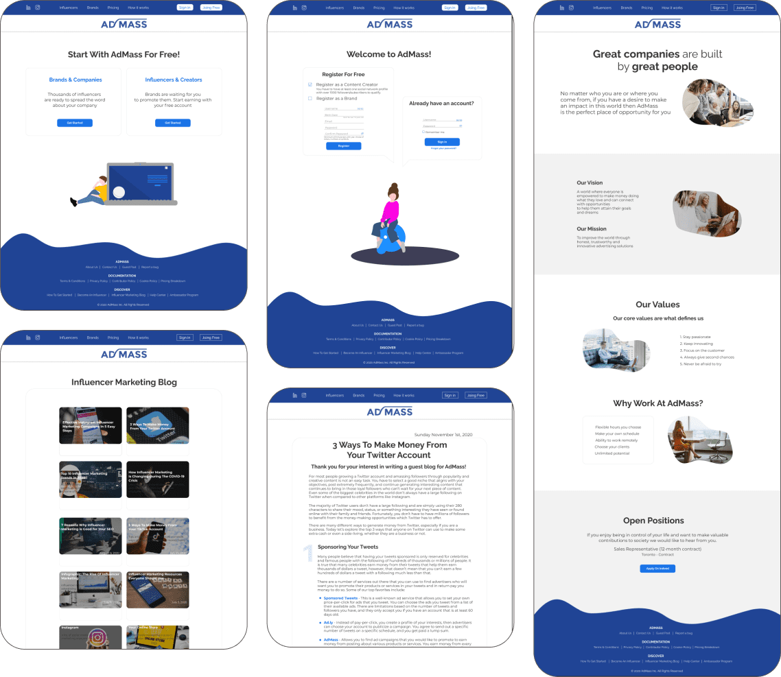 Admass.io — платформа для рекламы в социальных сетях, ориентированная на конверсию и использующая сарафанный маркетинг. Это полноценная платформа для развития и рекламы бизнеса, авторов в интернете. Клиент обратился к нам с просьбой: «немного освежить дизайн», сделать его современным, лёгким для восприятия.