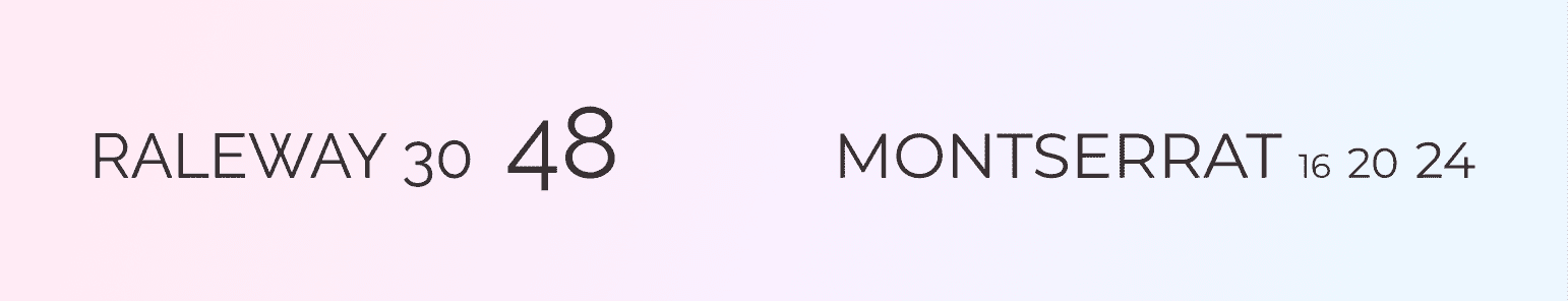 Так как по задумке, дизайн был достаточно спокойным и классическим — было принято решение сделать акцент на типографике. Для главных заголовков страниц выбрали — Raleway, для основного текста — Montserrat.