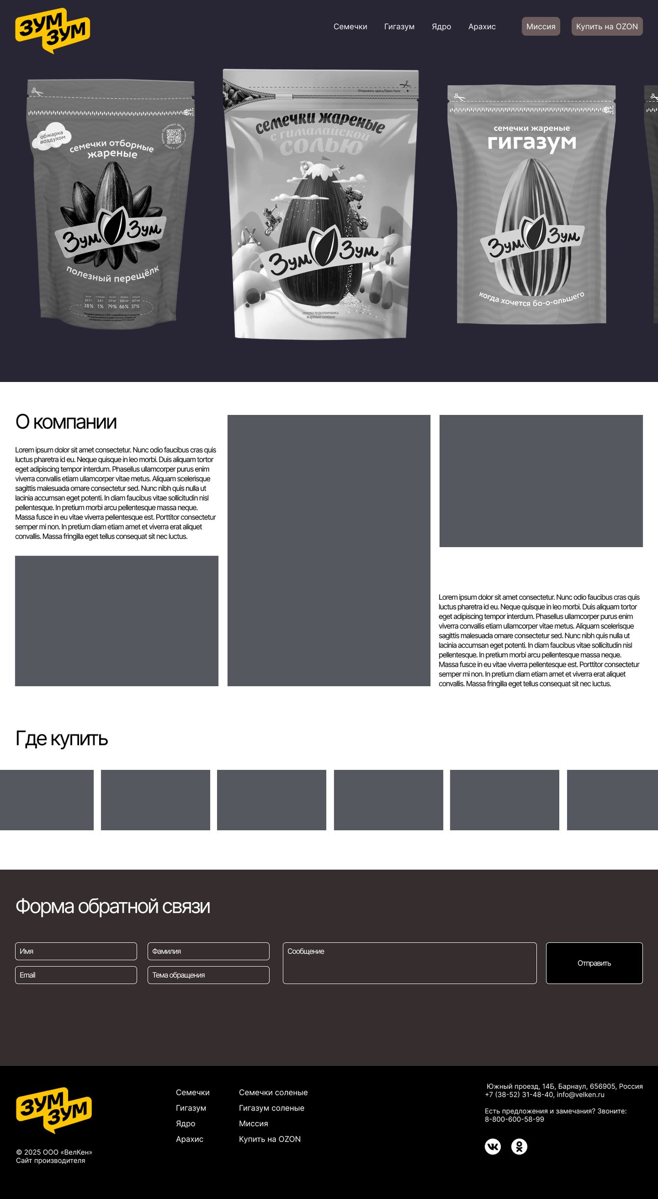 Функциональные блоки: добавили акценты на раздел «Где купить», формы обратной связи и контактную информацию, чтобы увеличить число обращений и продаж.