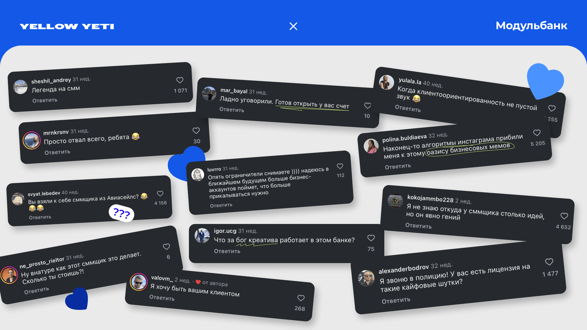Модульбанк – клиент мечты, который доверяет нашему видению и креативу и позволяет экспериментировать и тестировать разные подходы.