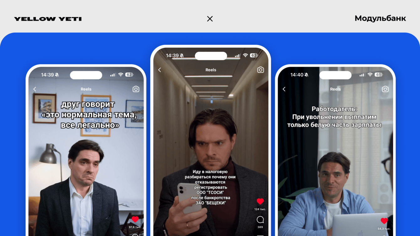 Наш главный герой-предприниматель сразу цепляет внимание и вовлекает в просмотр, потому что за год ЦА уже привыкла к качественному контенту Модульбанка, от которого все понимают, что ждать.