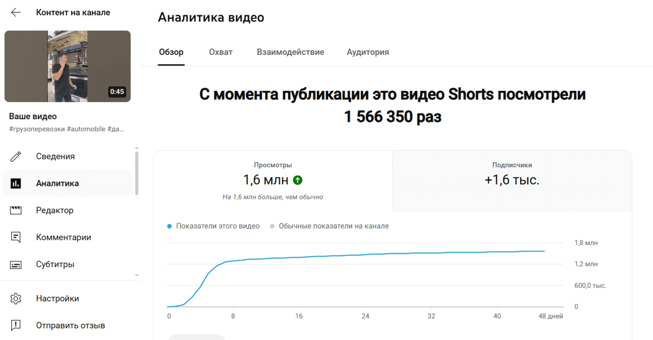 Начали мы с детального анализа соцсетей конкурентов: посмотрели тысячи юморных роликов про дальнобойщиков, логистов и экспедиторов, и выявили тенденции и закономерности, которые позволяют контенту в этой нише получать большие охваты и реакции, а значит и конверсия в подписку у таких материалов тоже выше. По итогу формирования рубрикатора, основной долей контента стали вертикальные видео.