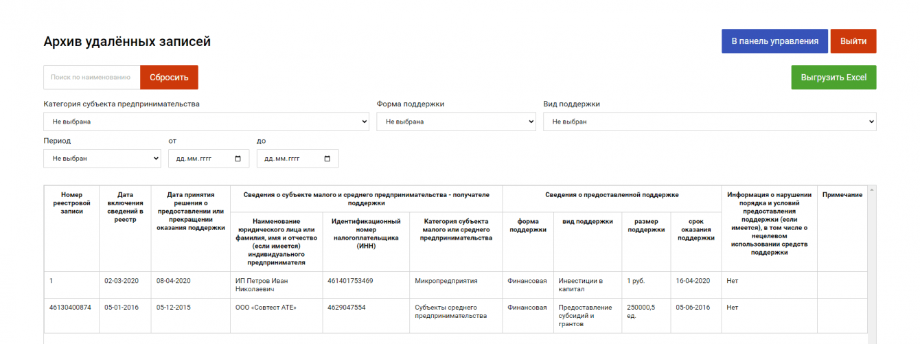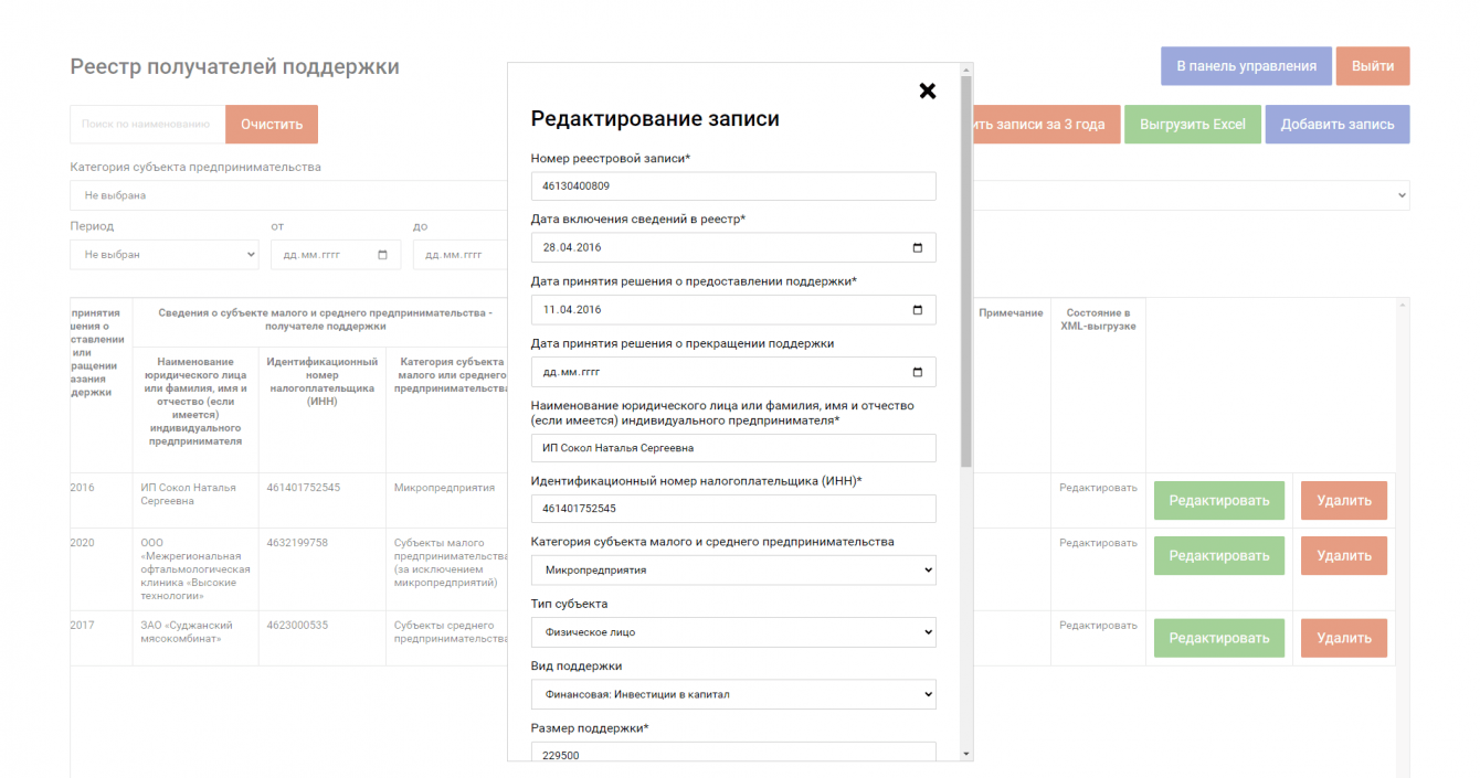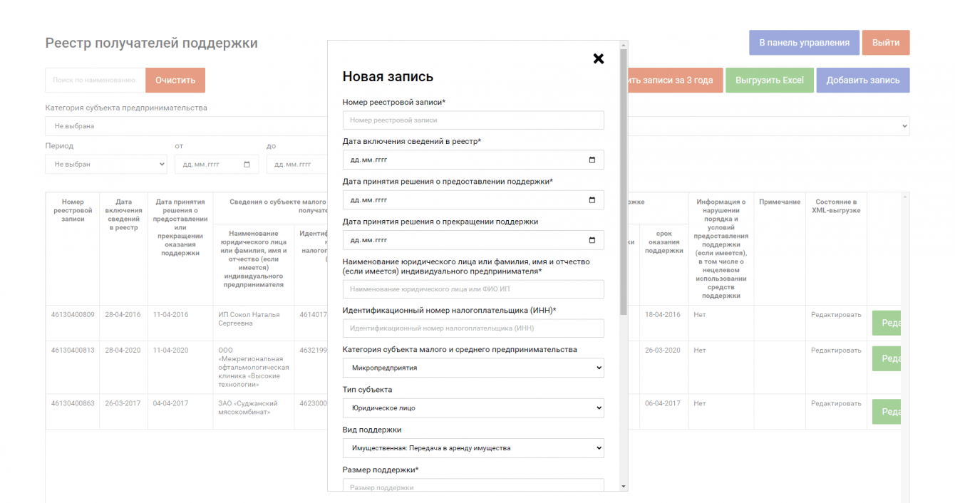 Задача: разработать web-приложение «Реестр субъектов малого и среднего предпринимательства - получателей поддержки».