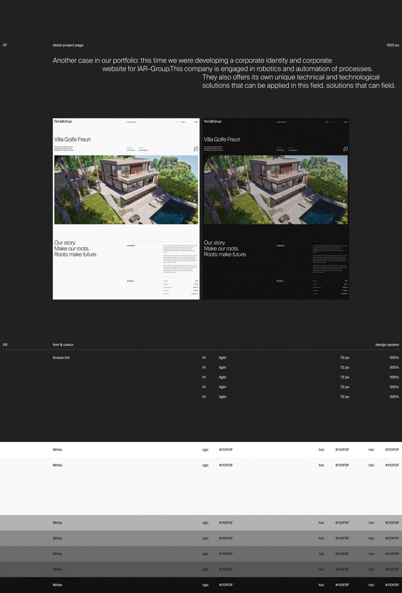 Для простого сочетания цветов мы решили использовать сложные стилистические решения. Например, сайт имеет две версии - “дневную” белую и “ночную” черную. Их можно переключать между собой в любой момент и в любом положении сайта.