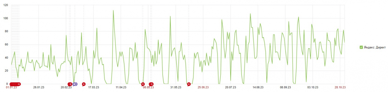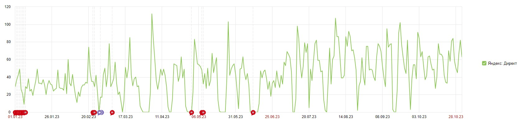 График переходов и конверсий показал стабильный рост и активность пользователей, что свидетельствует об успешности кампании и корректности выбранной стратегии.