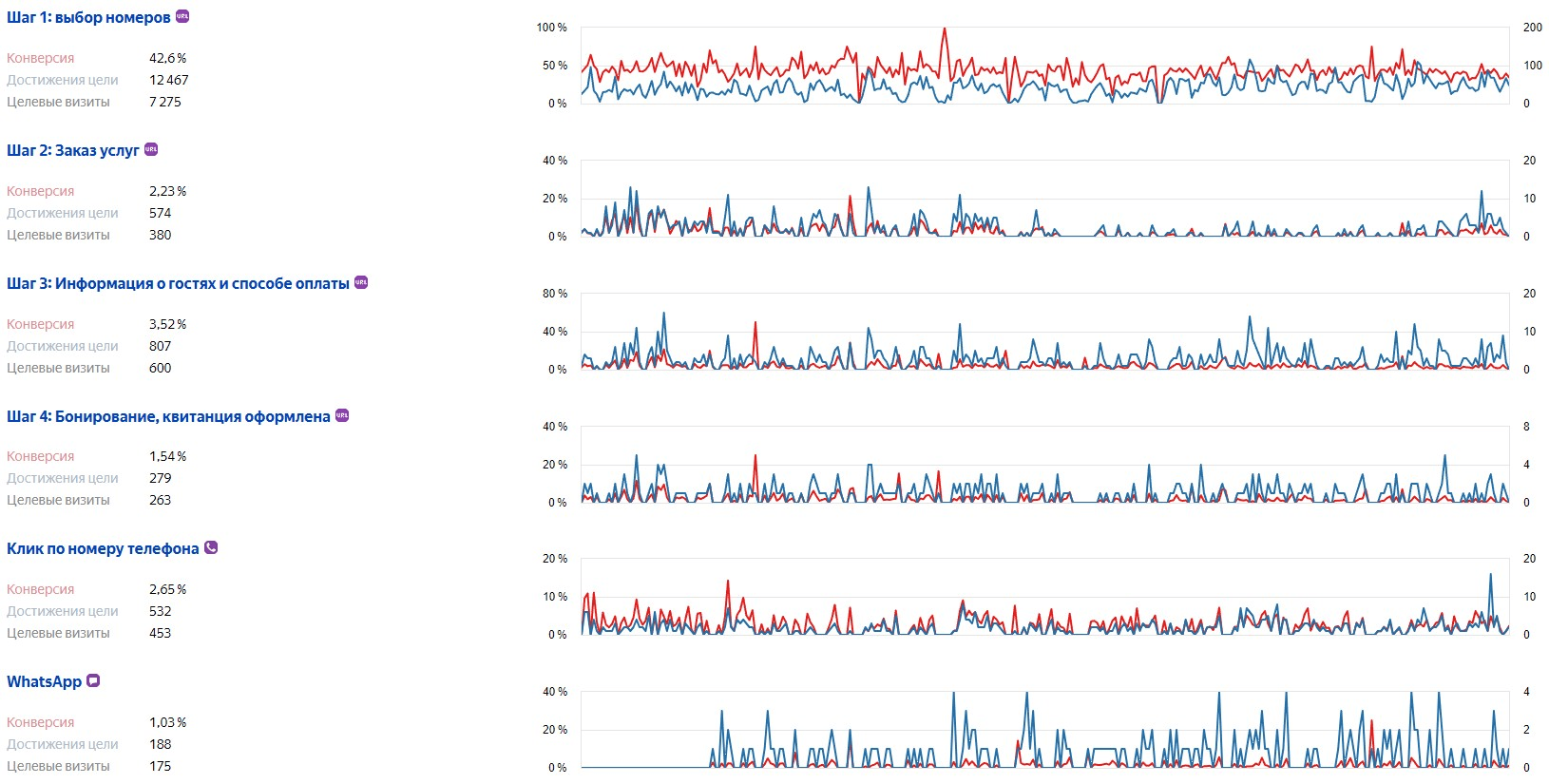 Также была проведена оптимизация посадочных страниц. Улучшена структура страниц, переработаны призывы к действию, добавлены социальные доказательства (отзывы, рейтинги), ускорена загрузка страниц и внедрены удобные формы бронирования. Это позволило повысить конверсию и снизить количество отказов.