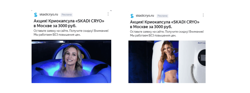 Несмотря на то, что для деятельности салона с крио-сауной не требуется обязательная сертификация, при рекламе уходовых программ для лица «CRYO T-SHOCK», она понадобилась. Модерация ни в какую не пропускала графический формат объявления. Пришлось поработать с заголовками и остановиться только на текстово-графических объявлениях.