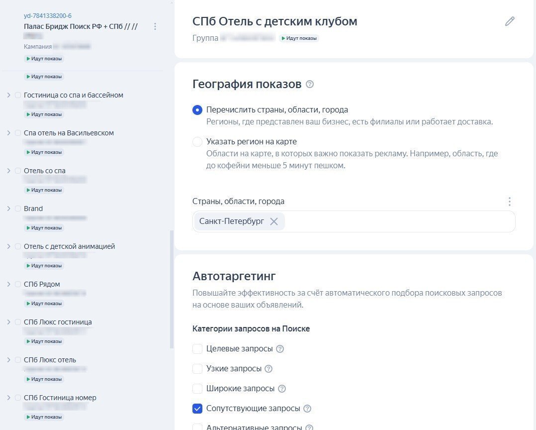 До обращения на проекте продвигали отель через детский клуб. Его услуги ориентированы на часть целевой аудитории — семей с детьми. Благодаря аудиту можно было на маленьком сегменте оценить логику предыдущих настроек, потенциал для рабочей связки, корректность работы Метрики и целей.