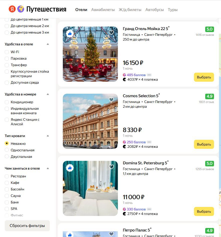 По данным Яндекс Путешествий, средняя стоимость за стандартный номер в пятизвездочном отеле в Санкт-Петербурге составляет 13 020 рублей.