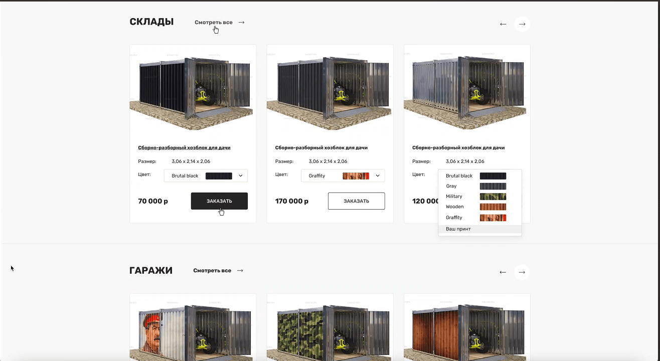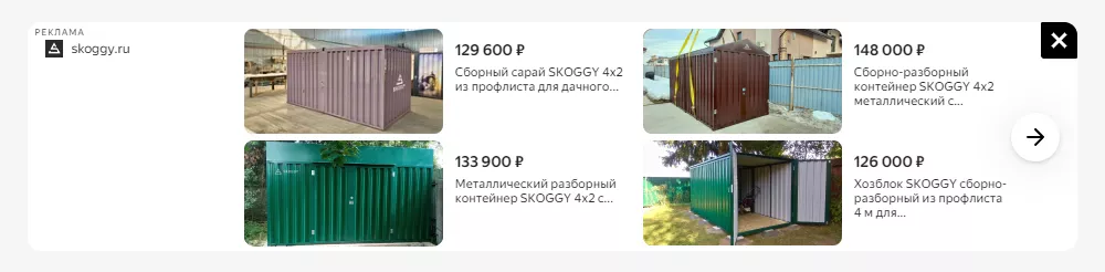 У производителя гаражей и хозблоков SKOGGY накопилось множество вариантов продукции, часто проводятся акции, публикуются выполненные проекты. И всё это уж очень хочется использовать в рекламе. Поэтому, для решения вышеописанных задач мы выстроили следующий рабочий комплекс:
