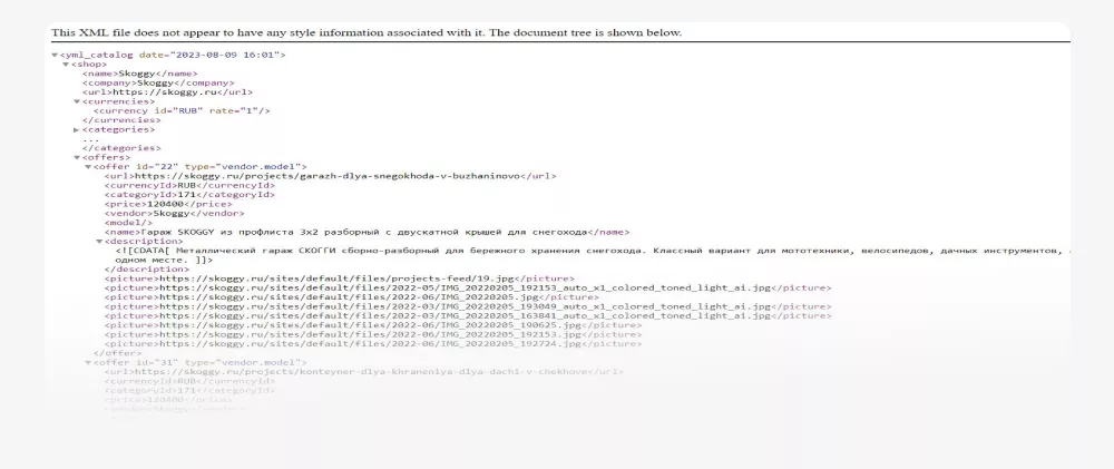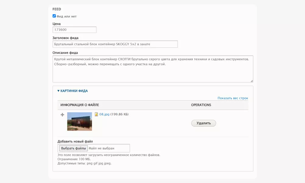 Вся информация после выбора галочкой автоматически отправляется в файл фида.