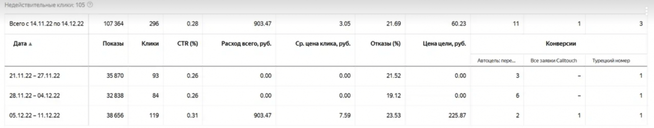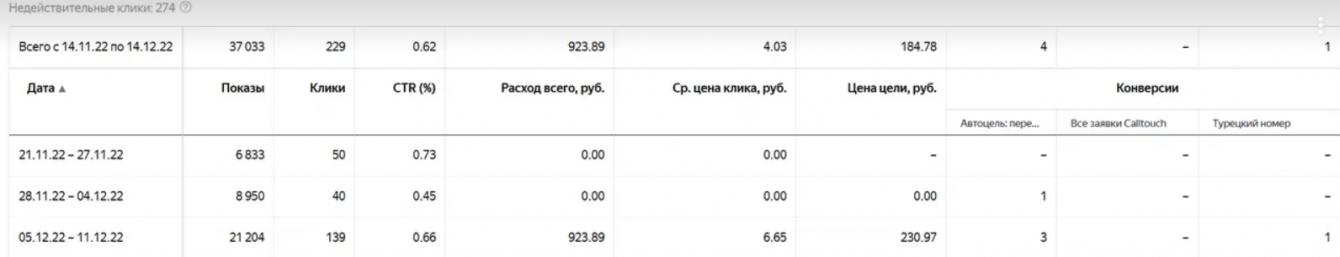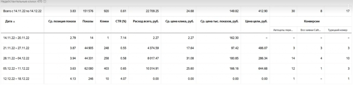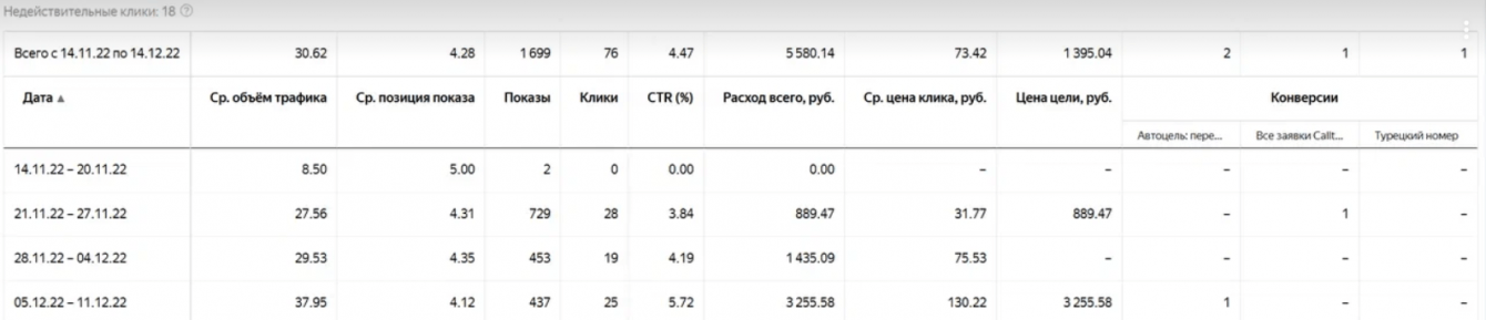 За период с 14.11 по 14.12 получили заявки через сайт (по данным статистики Яндекс.Директ):