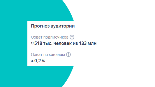 Кстати, после выбора таргетов вы можете посмотреть прогноз охвата по подписчикам и каналам. Для нашего бюджета в 10 000₽ в месяц в интерфейсе нам насчитали следующее.