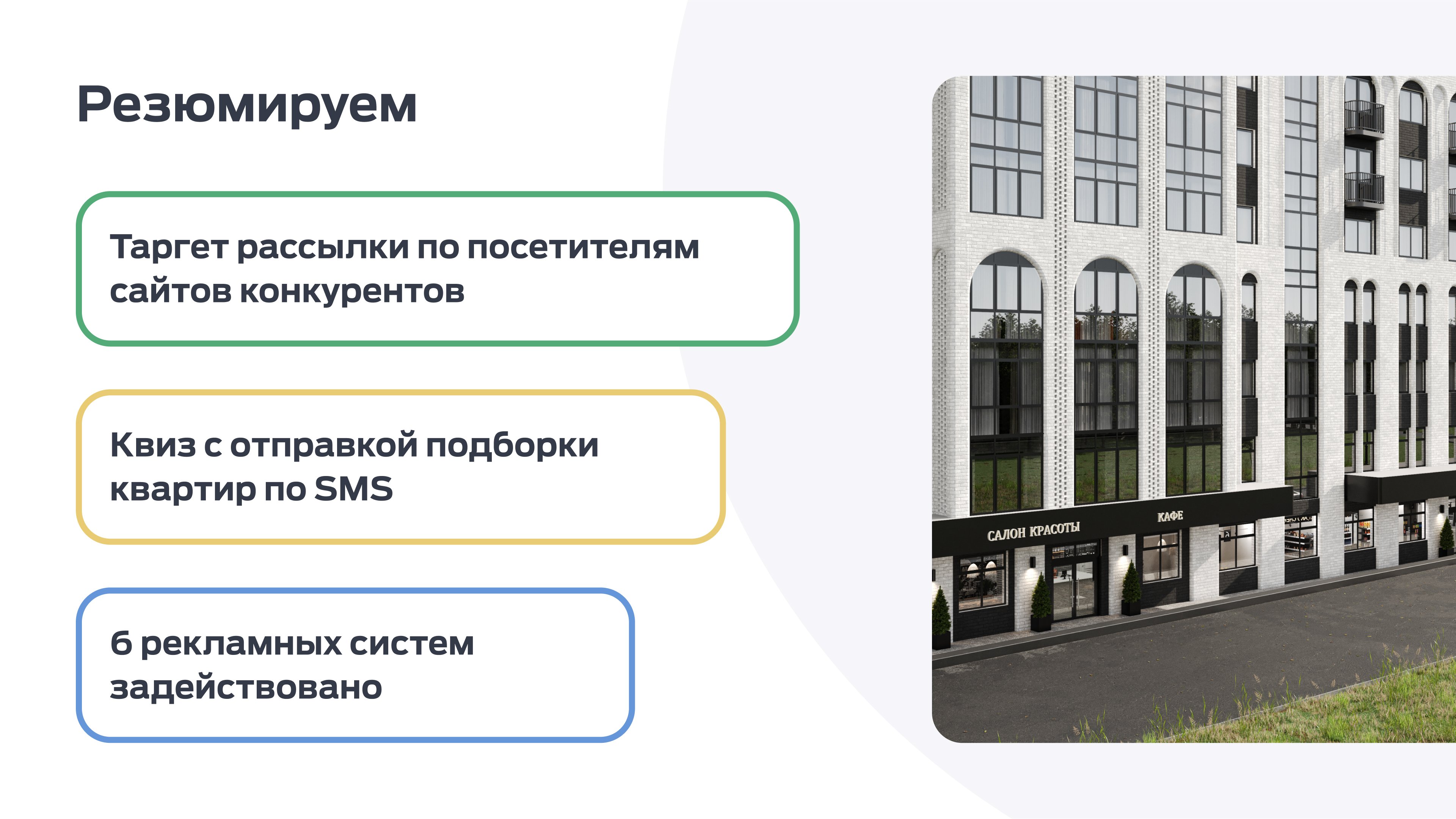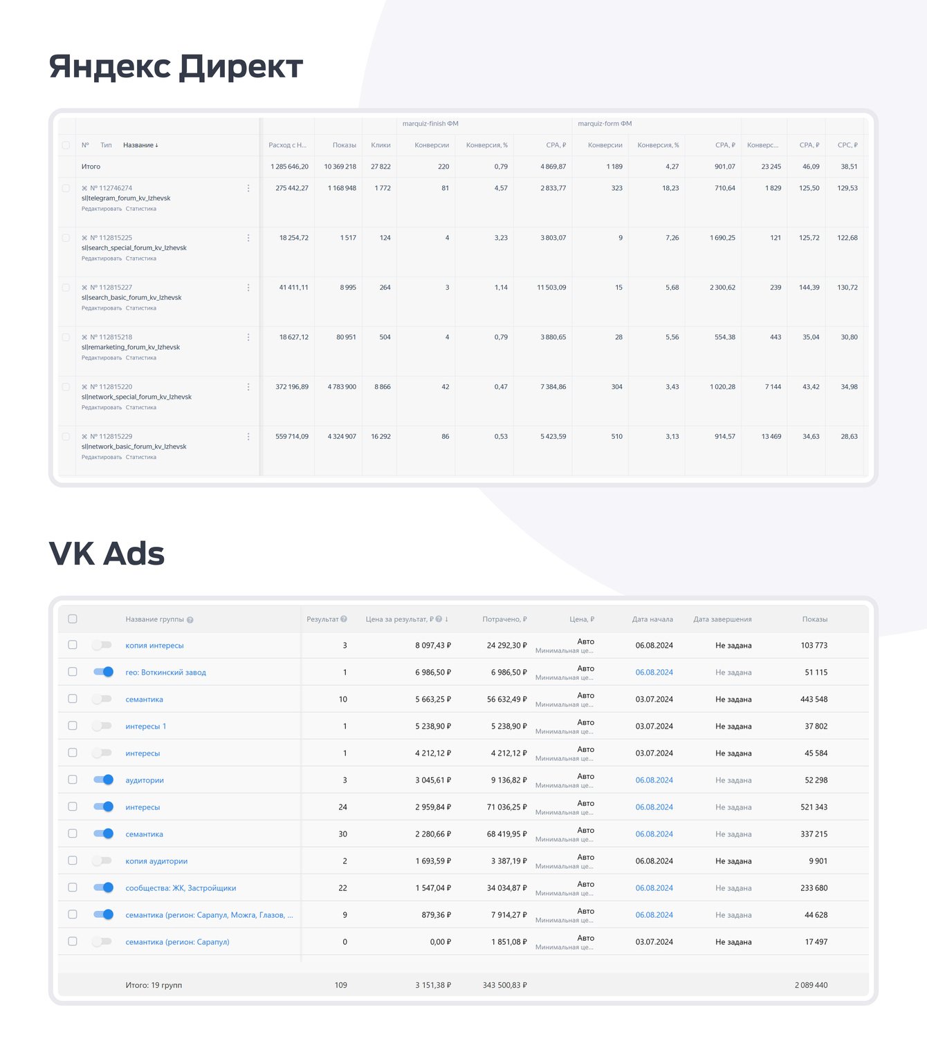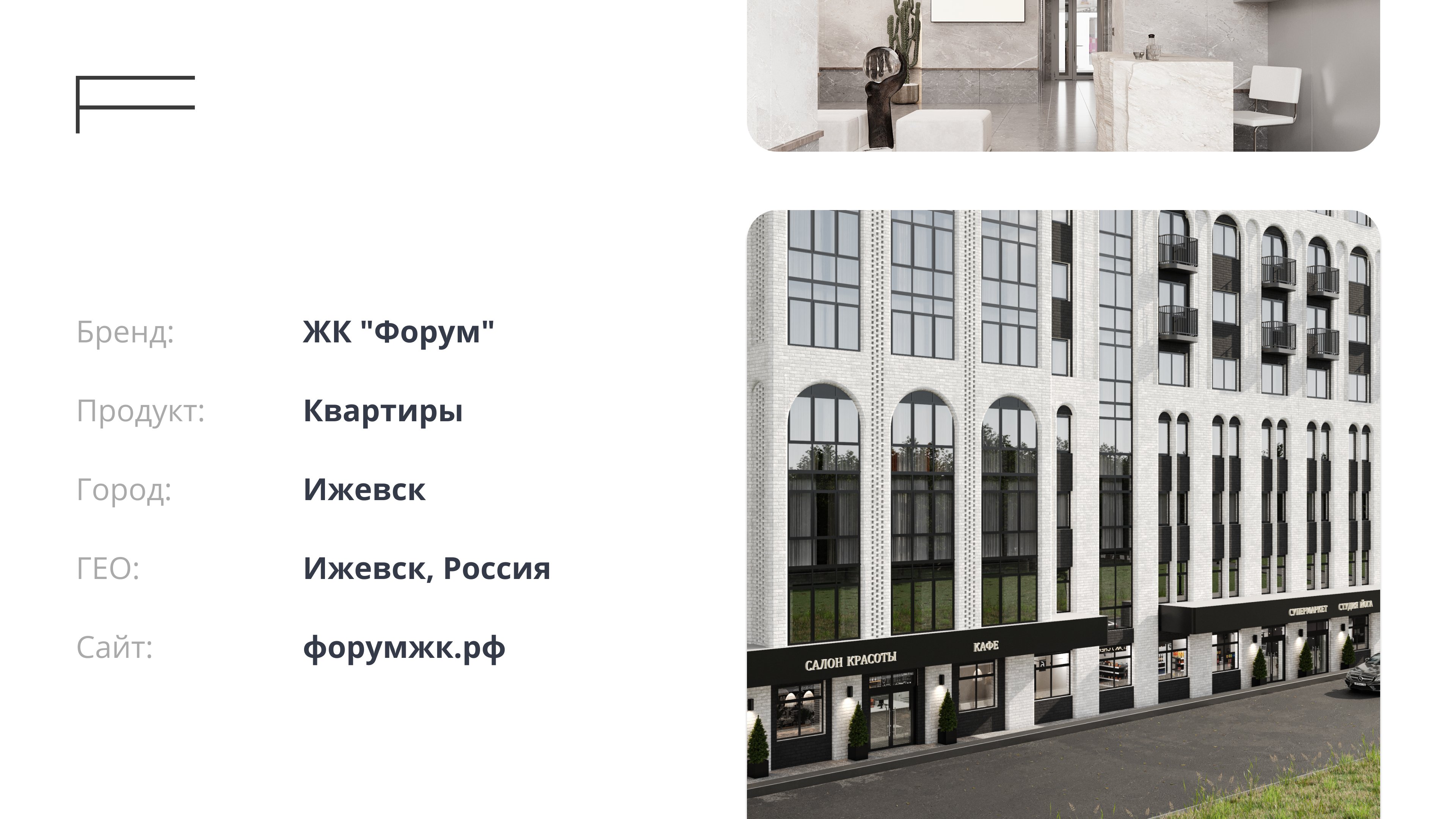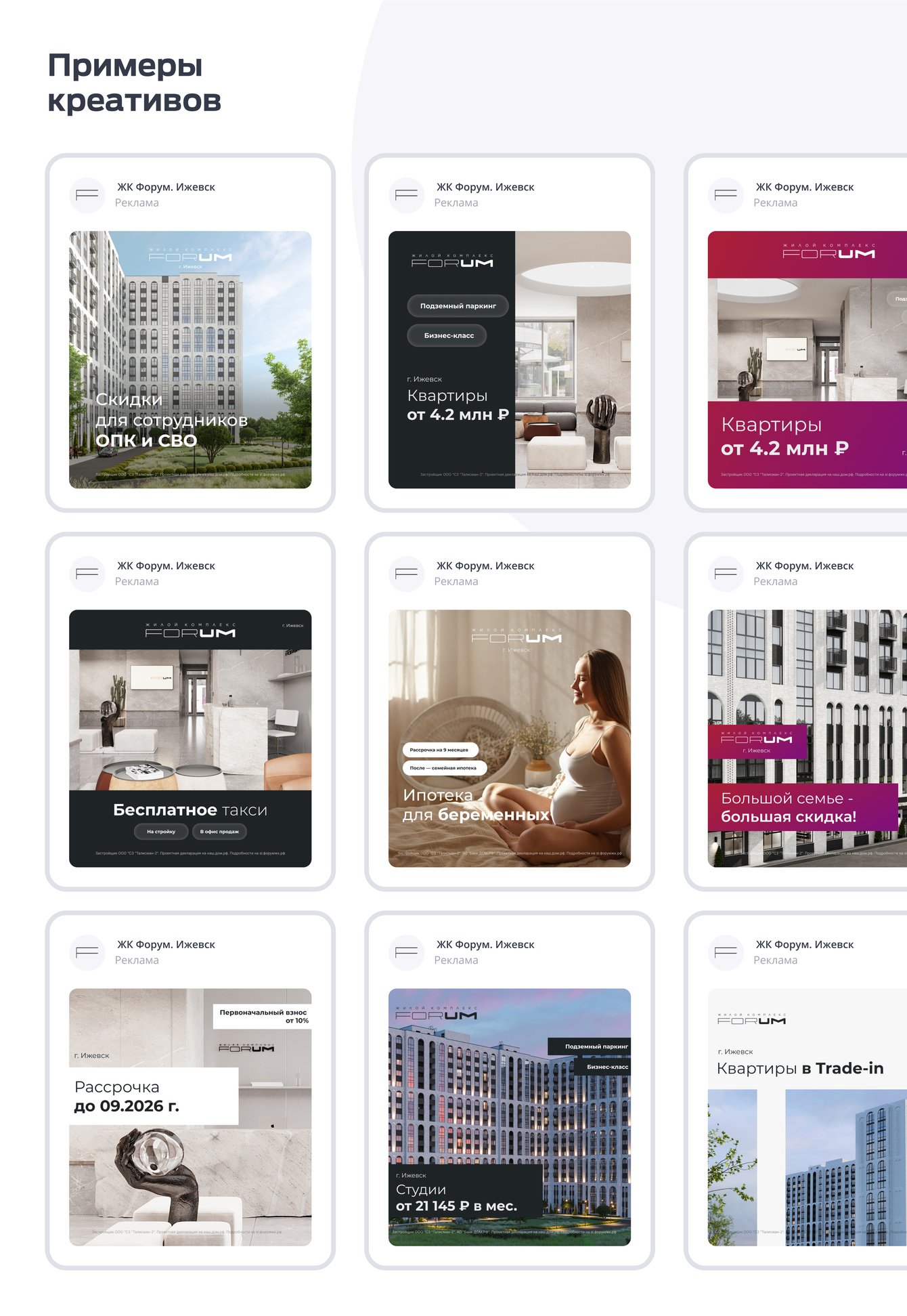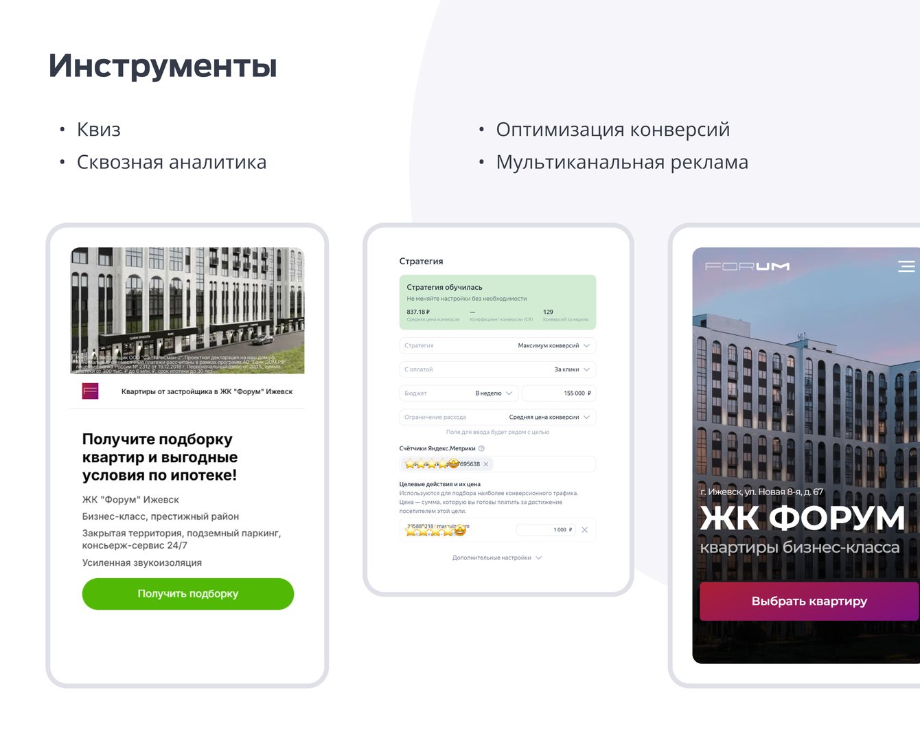 Продвижение объекта бизнес класса в Ижевске. Гиперлокальный таргетинг, реклама по аудитории схожих по классу жилья объектов города. Максимальное количество подходящих рекламных площадок. KPI — целевые лиды.